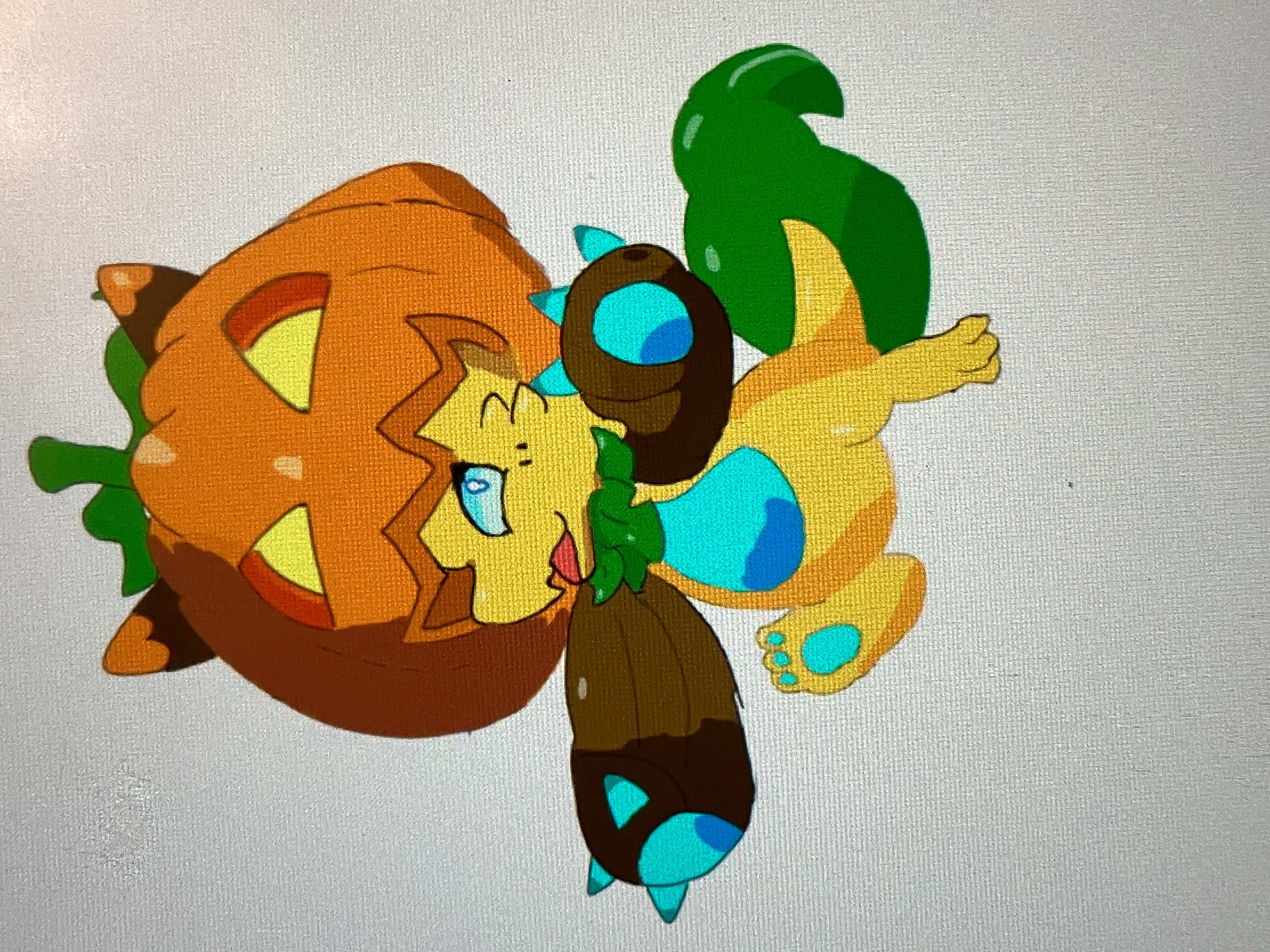 ハロウィンカボチャの妖精キノコドラゴンを描いてみました!