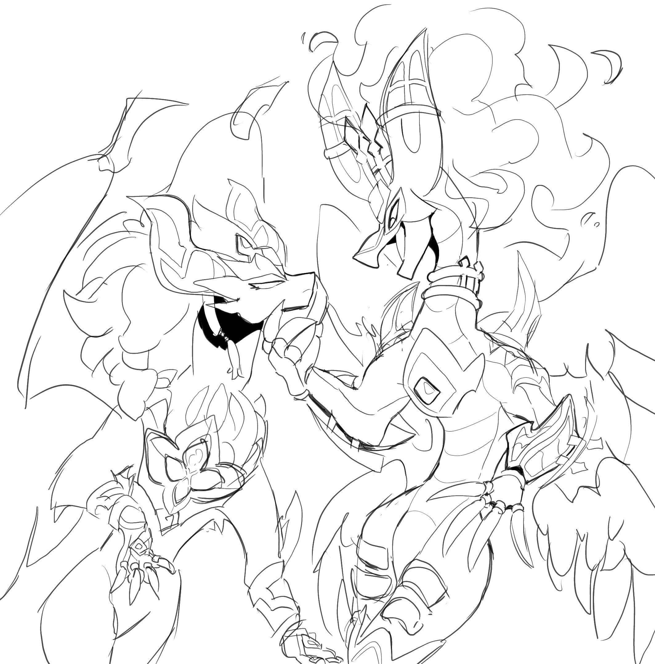 이건 전에 그린 건데, 말카르티스와 메테오라 라는 친구와 쿠쿠스입니다 (//owo////)