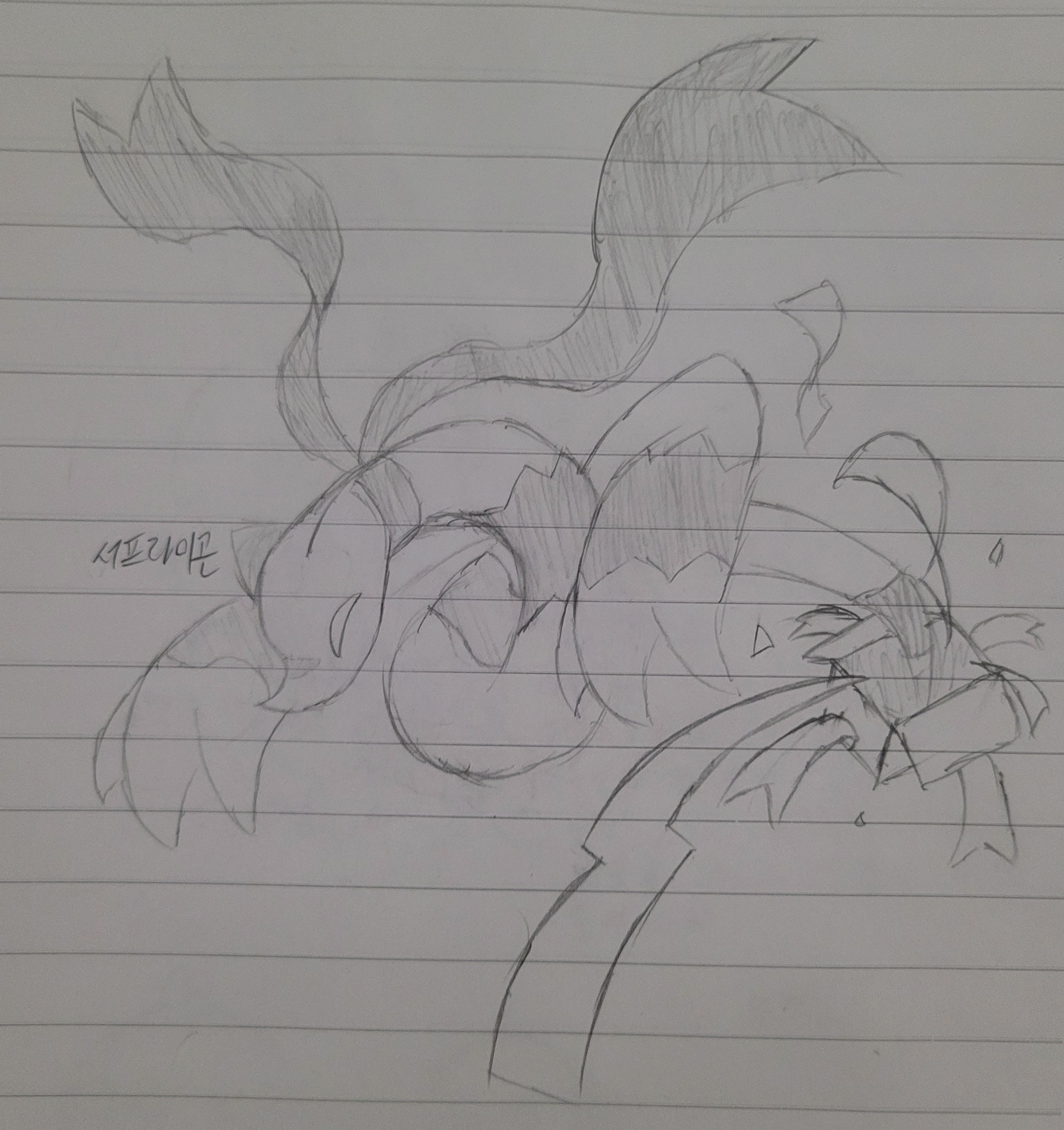 서프곤이 설화에 나온지 1년이 되었네요 시간이 정말 빠릅니다..ㅠㅠ 이 그림을 그리게 된 계기가 설화에 서프라이곤이 라이곤으로 오타가 나서 건의를 몇번 했는데 안 바뀌길래