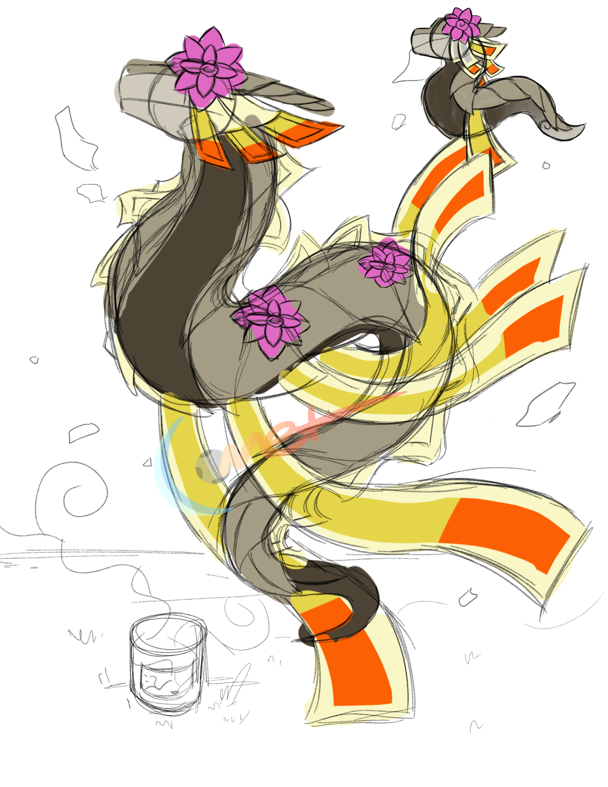 안녕하세요! 다가오는 콘테스트를 위해 새로운 크리에이터 드래곤을 만들고 있어요! 중국의 향종이 태우는 전통에서 영감을 받았어요. ^ ^