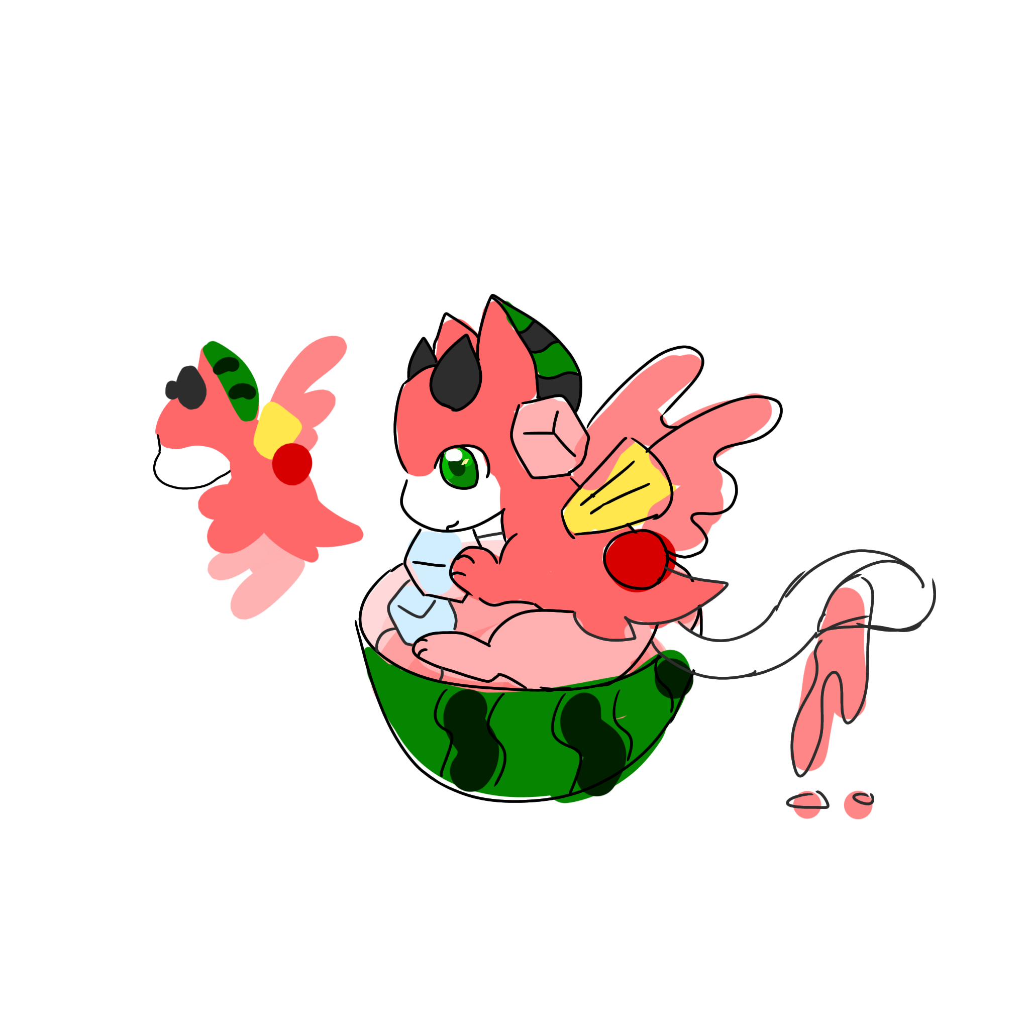 이 두 친구 외에도 종이팩? 음료나 우유느낌 작룡이 그려보고 있습니닷