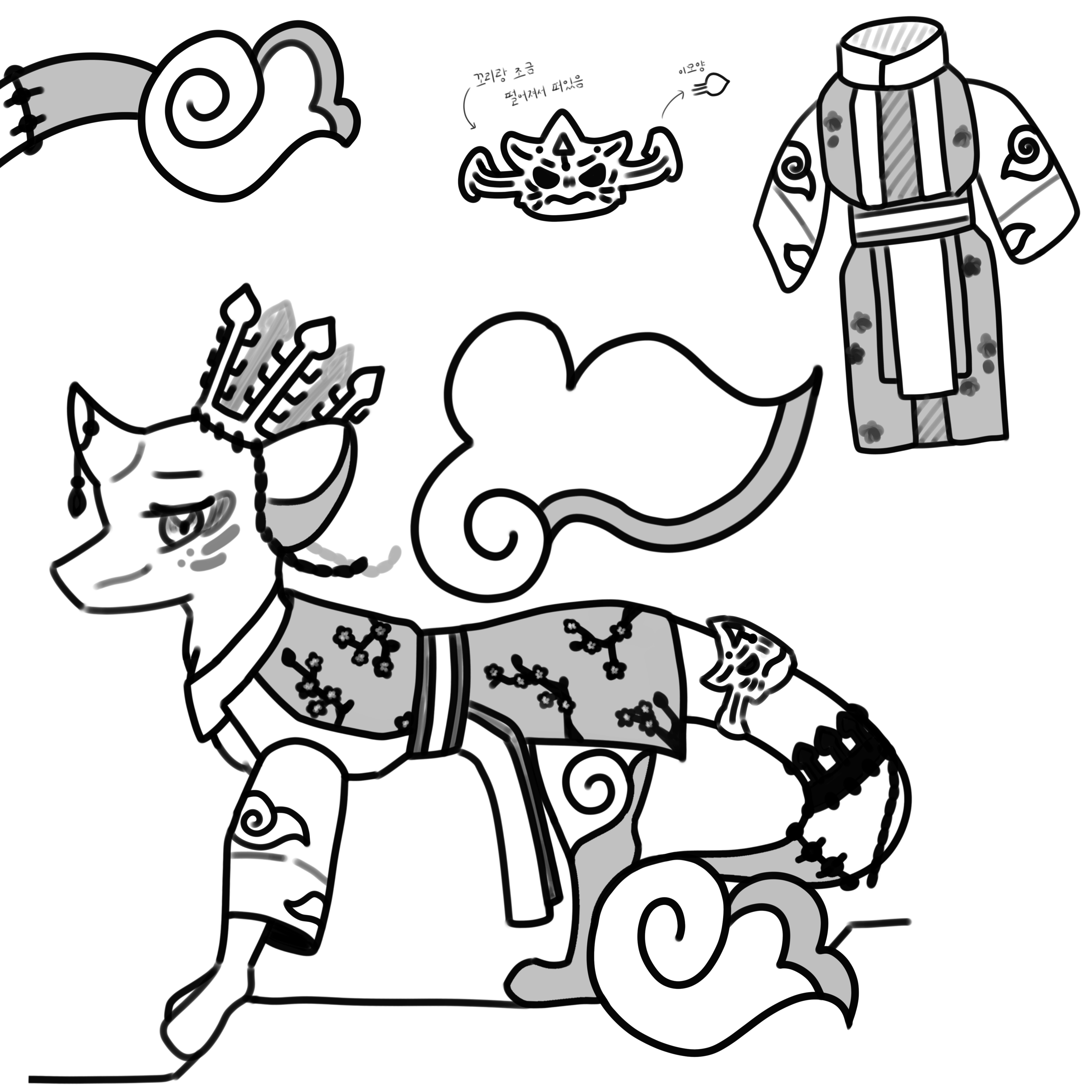 색은 원하는대로 쓰시라고 흑백으로만 그렸어요! 원본 알아볼 수 있는 수준의 변형 가능합니다.