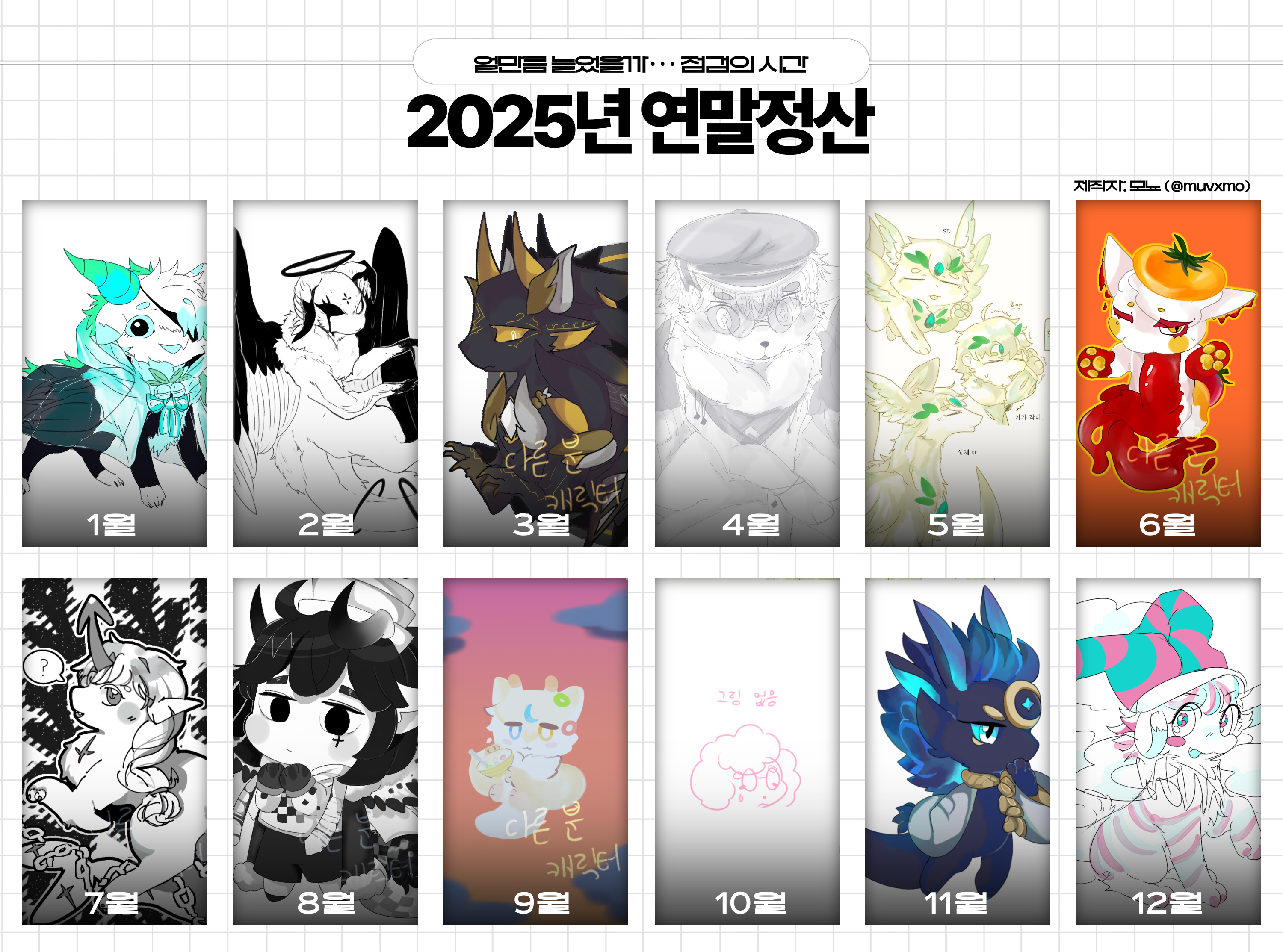 그나마 열심히 그렸던 그림으로 정리해봤습니다 새삼 이렇게 보니 올해는 개인작을 많이 못 그린 거 같아요. 10월에는 아예 그린 그림이 없네요...ㅋㅋ
