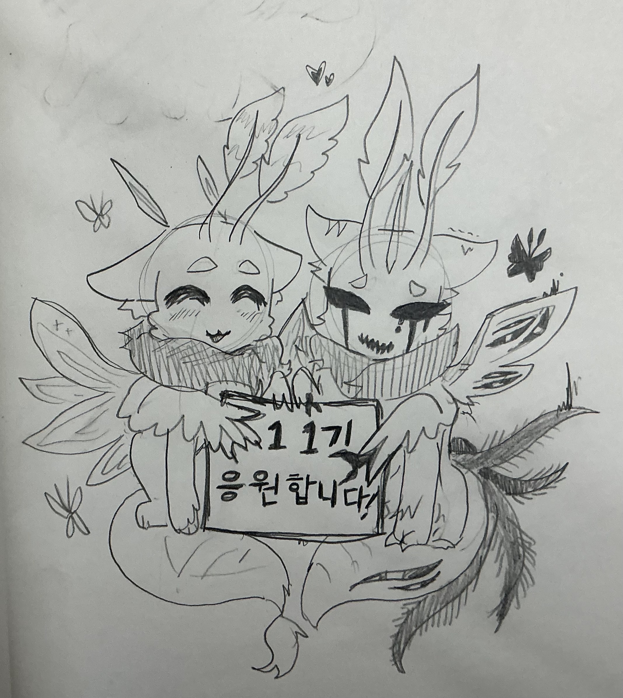 만약 좀더 일찍 로그인했다면 팬아트도 많이 그렸을텐데, 그러지 못해서 아쉽네요… 12회차 팬아트는 두둑히 끓여오겠습니다! 그땐 2마리 정도 낼수도있고용