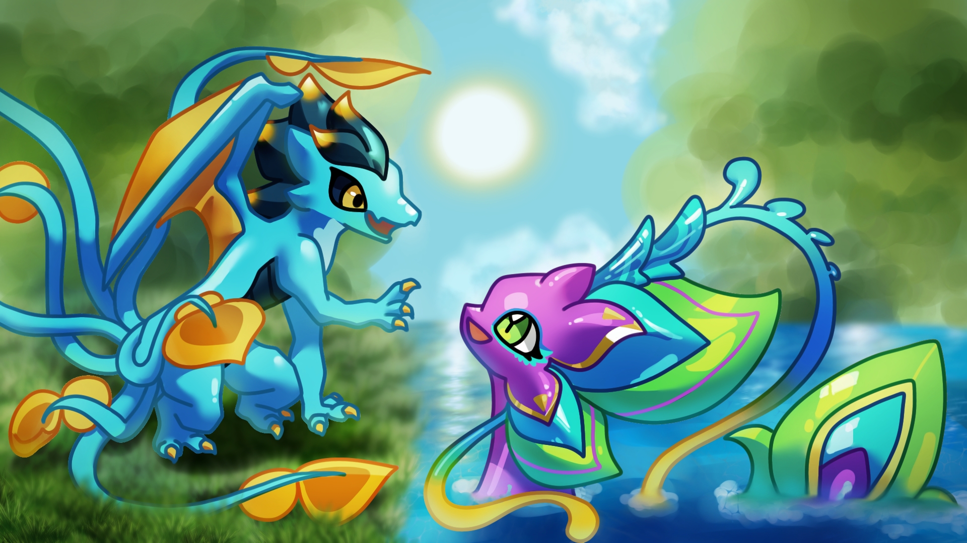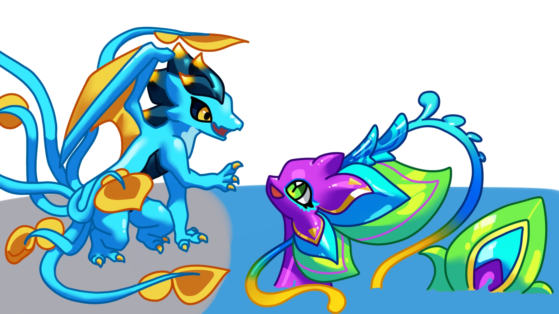 완전 좋은거🫠 인겜룡 처음 그려봤는데 채도 완전 높네요ㄷㄷ 그런 친구들만 집어온건지.. 드빌 맨 처음으로 얻었던 테일이랑 첫 최애였던 네시 그려왔습니다 :D