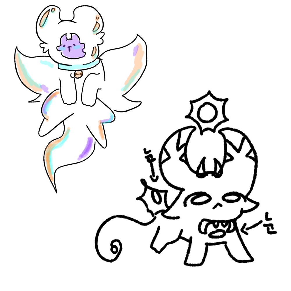 🩵바다 요정..? >분양중/ ❤️꼬마 악마 (태양+입+눈)
