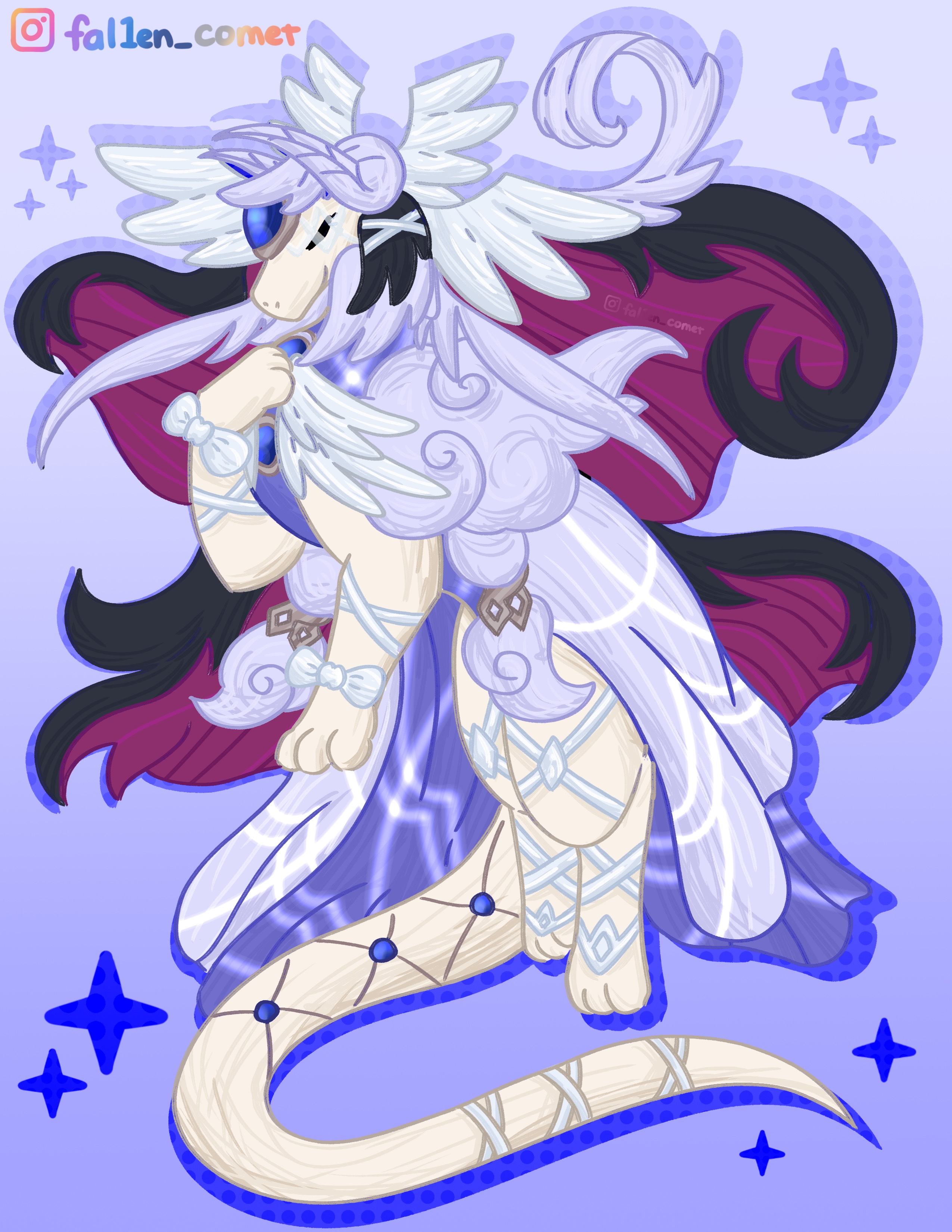 Hii, I drew Renavia with the colour scheme of a character from another game! The colouring is a bit messy because I got lazy 😂
