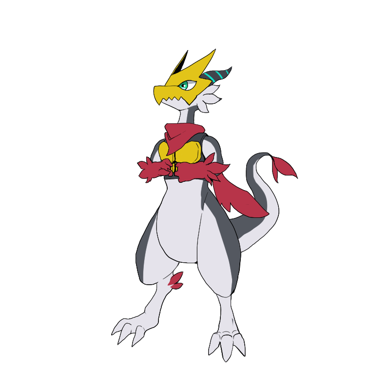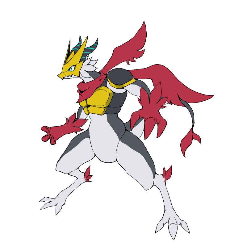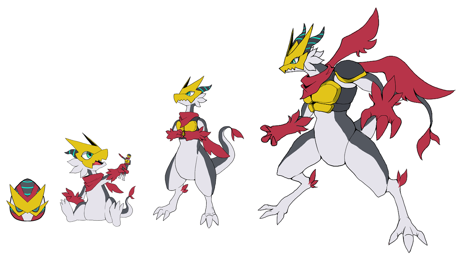 성장할수록 조금씩 변화하는 가면, 장갑 같은 깃털 손, 붉은 머플러를 형상화한 날개 등이 이 자작룡의 특징이라할 수 있습니다.