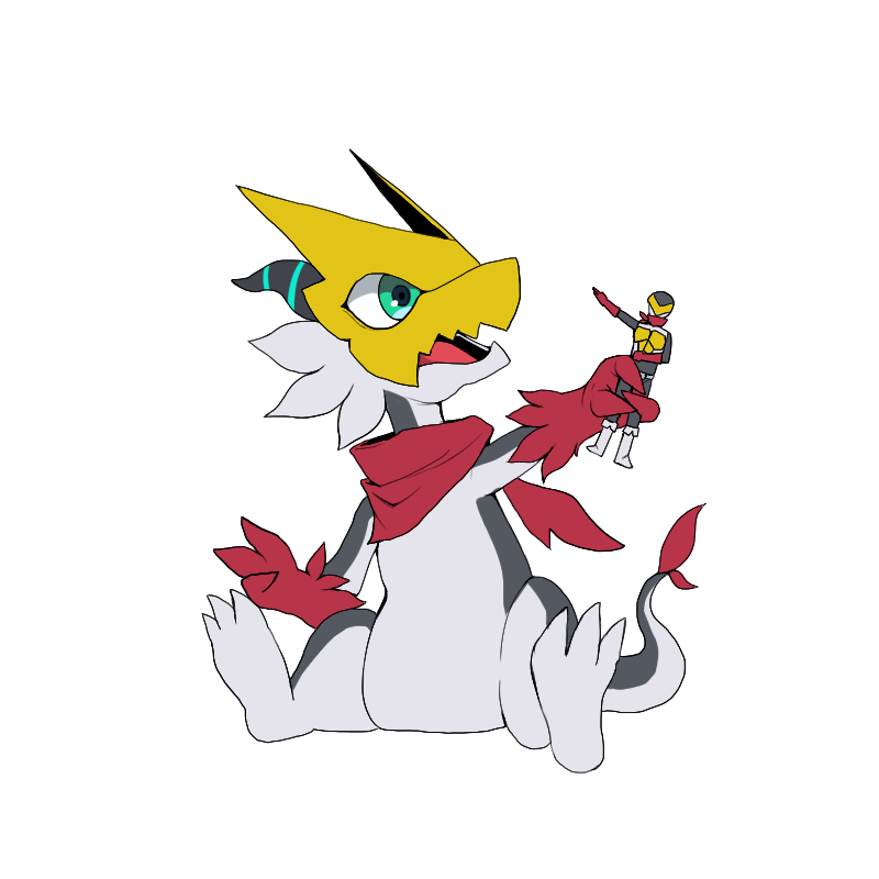 황금가면의 가사에서 언급된 황금가면, 고무장갑과 옛 특촬물에서 볼 법한 붉은 머플러, 갑주 등을 드래곤에게 적용해봤습니다.