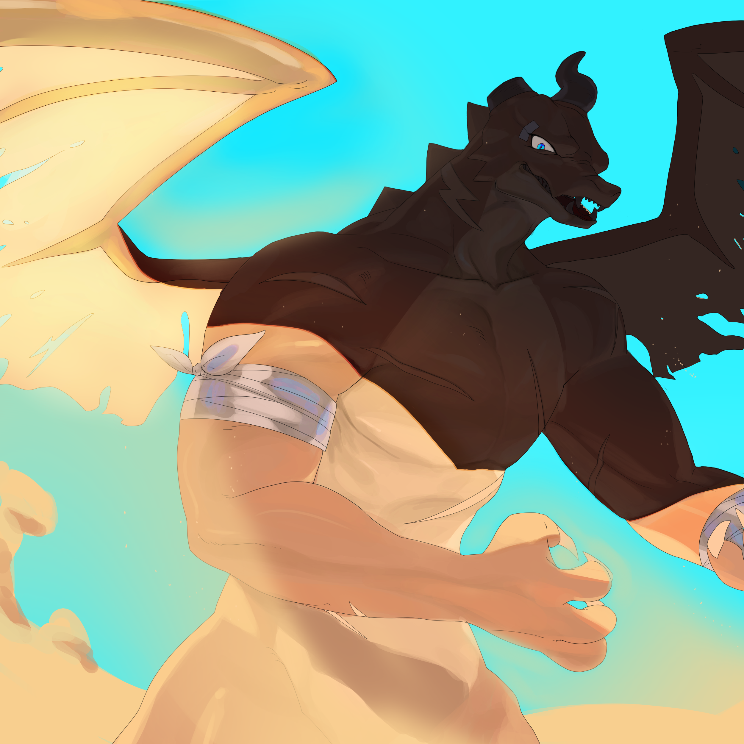 블루라이트닝! 너무 귀엽워요 난파선에서 등장해서 난파선 배경으로 그렸어요