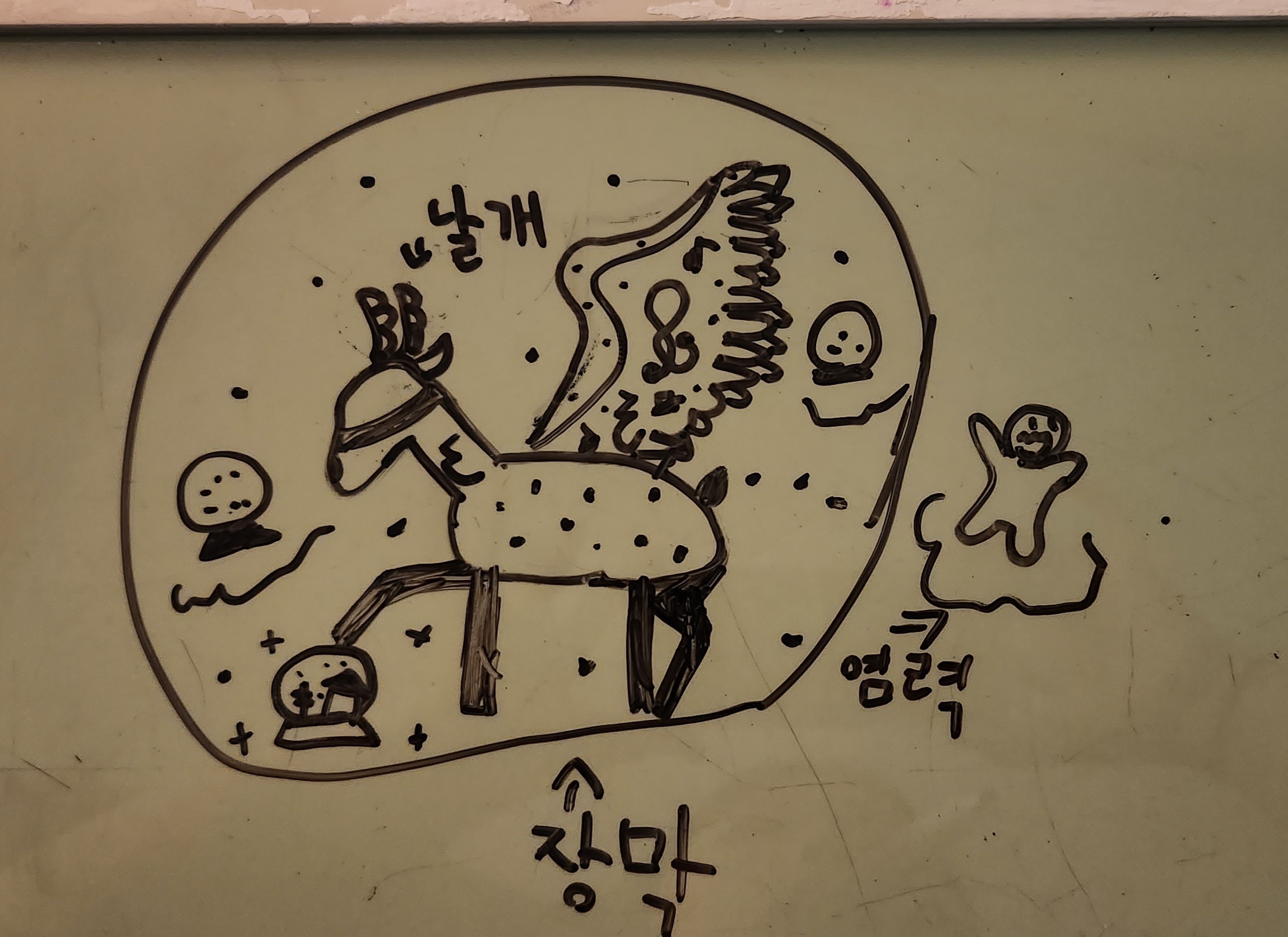 해치[주위로 아름다운 노랫소리가 들리며,몸에 무늬가 생긴다](암,수는 뿔이 있음)
