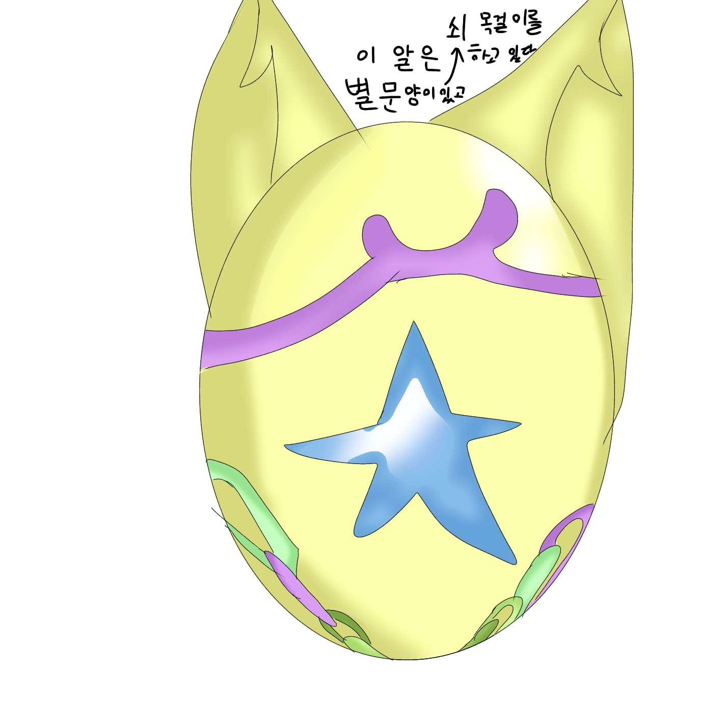 설명:이 알은 별 문양이 있고 쇠 목걸이를 하고있다.