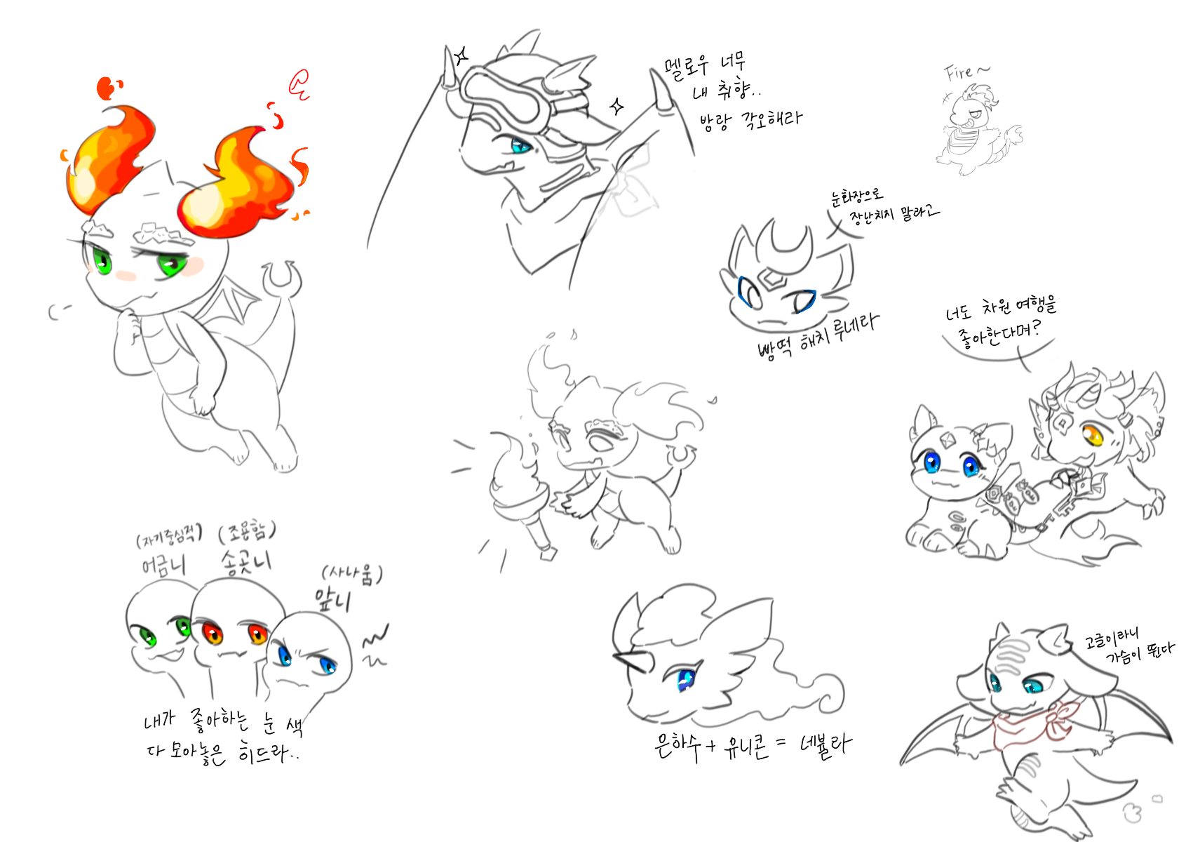 처음에는 플레임의 큼지막한 녹안이 너무 좋아서 끄적이기 시작했는데, 어쩌다보니 우글우글해졌네요..(ㅋㅋ) 플레임 트윈테일한 것 같아서 귀엽고 예뻐요.