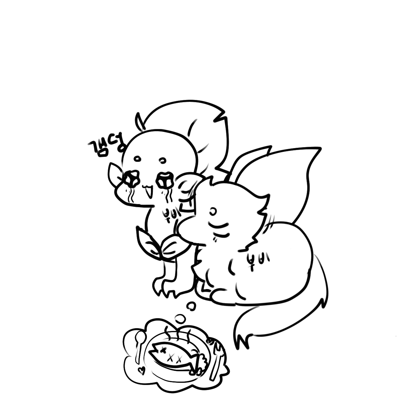 자작룡이 두마리로 늘어서 둘이 노는거 그리니 재밌네요ㅋㅋ