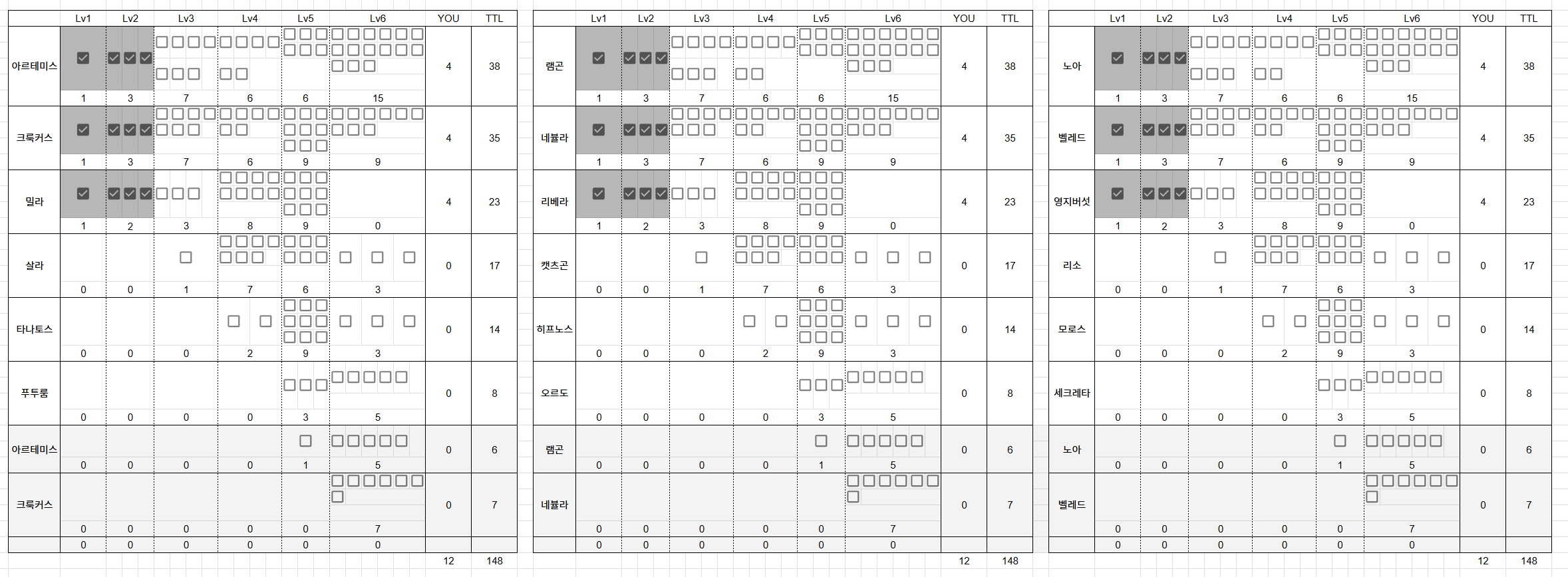없는것보단 나을것같아, 저처럼 낭비 없이 육성하실분들을 위해 급하게 만든대로 배포해봅니다.
