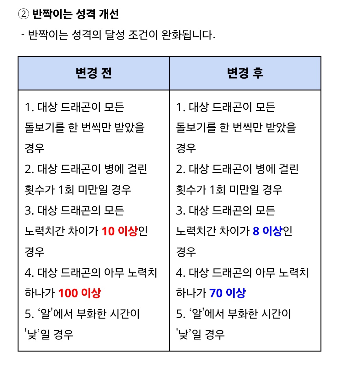 2025.11.06 업데이트 후 성격 조건이 완화 되었습니다