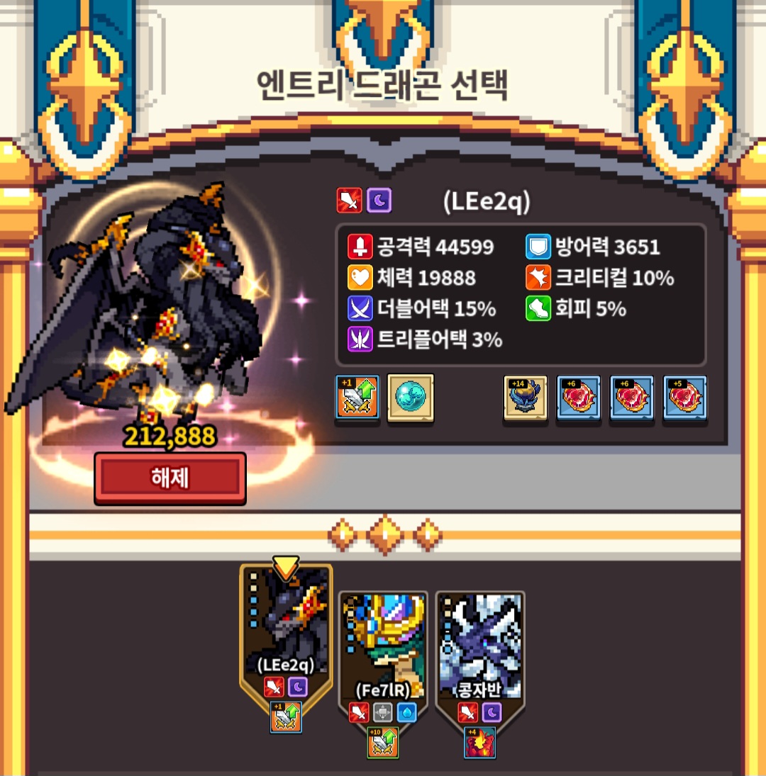 젬 | 올 공격력 [희귀] 2/1/1 | 올 공격력 [고급] 10/10/10 | 올 공격력 [희귀] 2/2/3 |