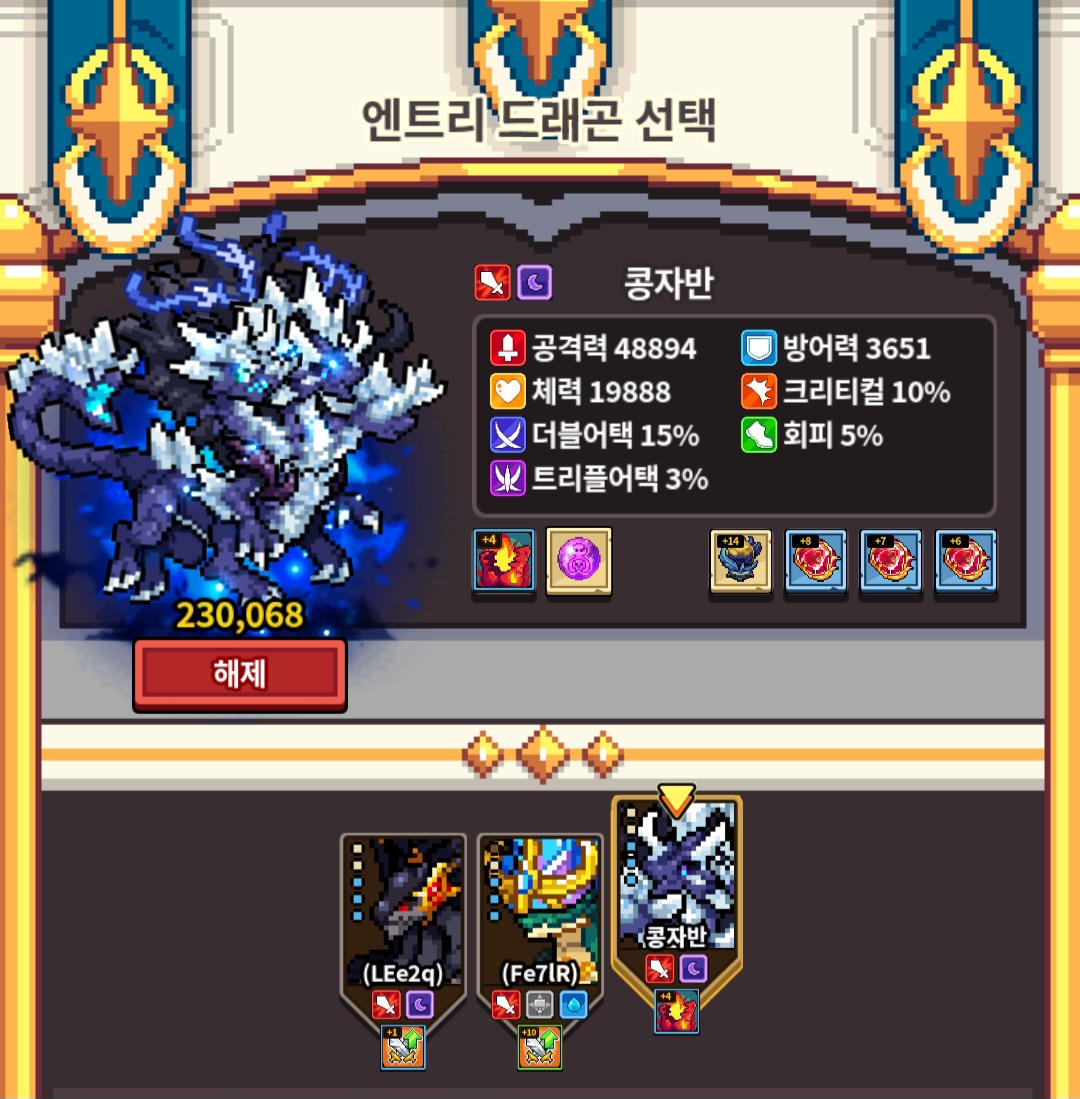 젬 | 올 공격력[고급]10/9/9 | 올 공격력[고급]10/10/10 | 올 공격력[희귀]4/1/3 |