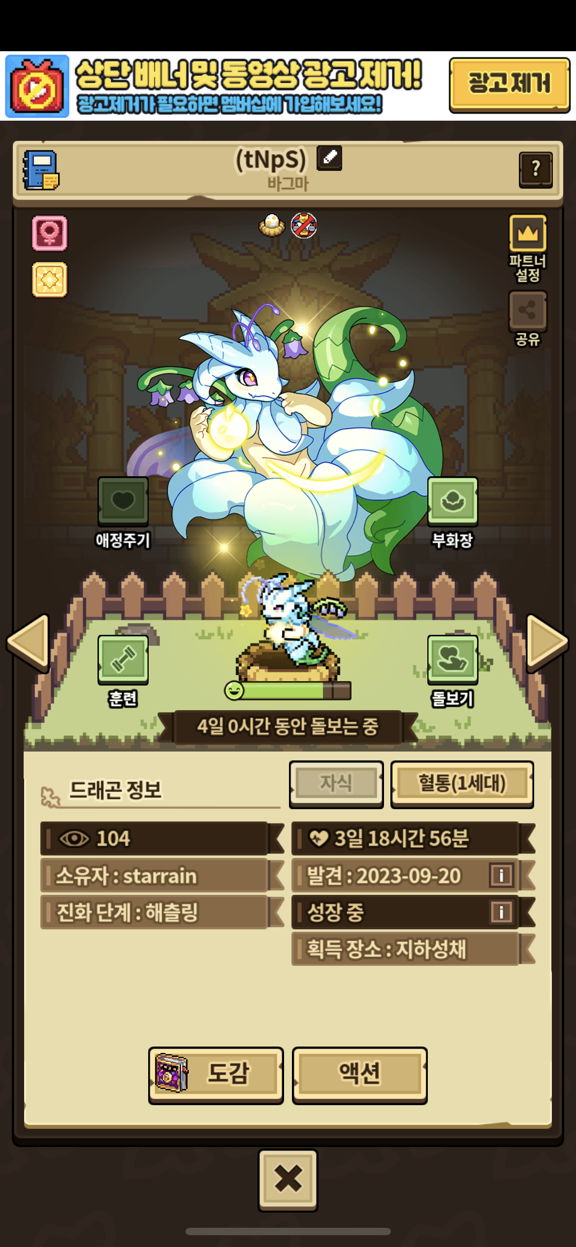 빌리지 한 10번 이내 돌아다닌것 같고 파트너 해놓고 다른 용용이들 쓰담 많이 했어요 해츨링 되기전엔 조회수 100 안넘었었던거 같아요