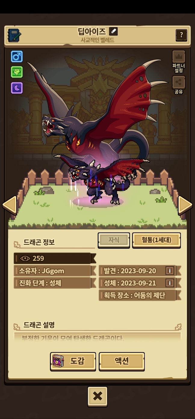 - 1. 사교적인 성격을 만들고 싶은 드래곤을 파트너로 설정한다