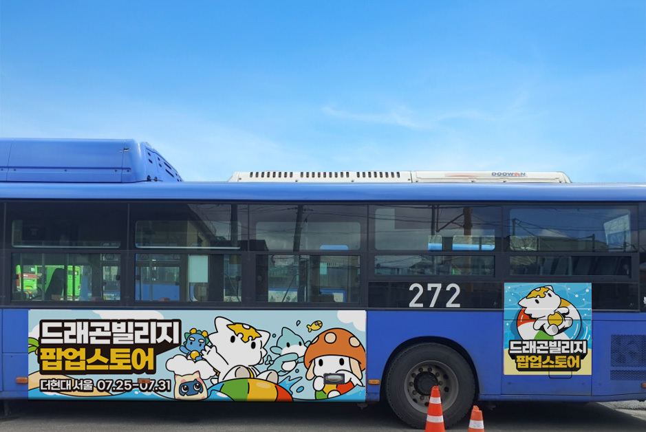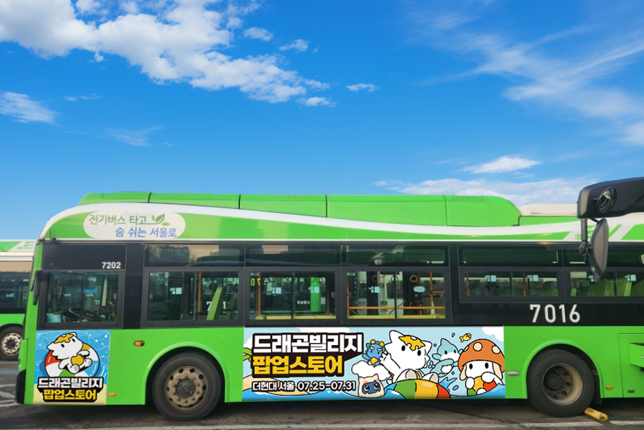 드래곤빌리지 더현대 서울 팝업스토어 소식이 담긴 버스 광고를 공개합니다!