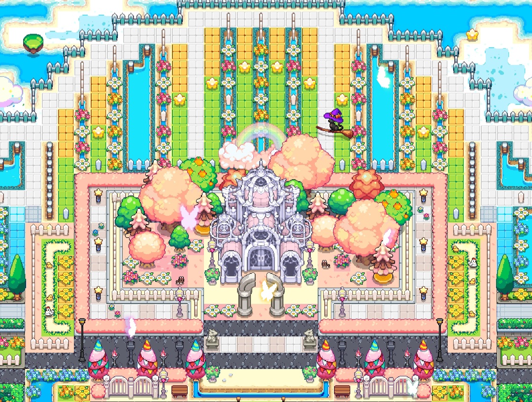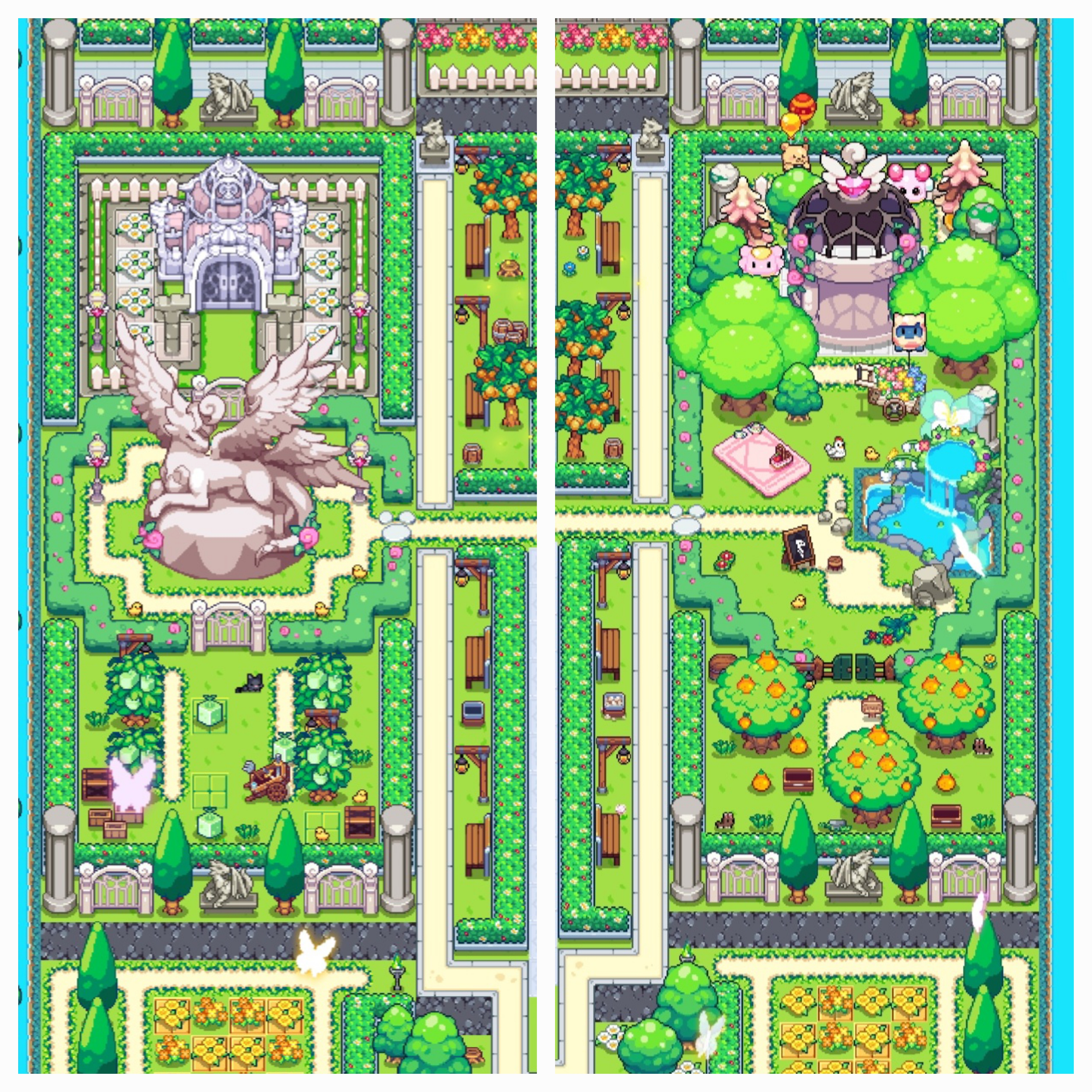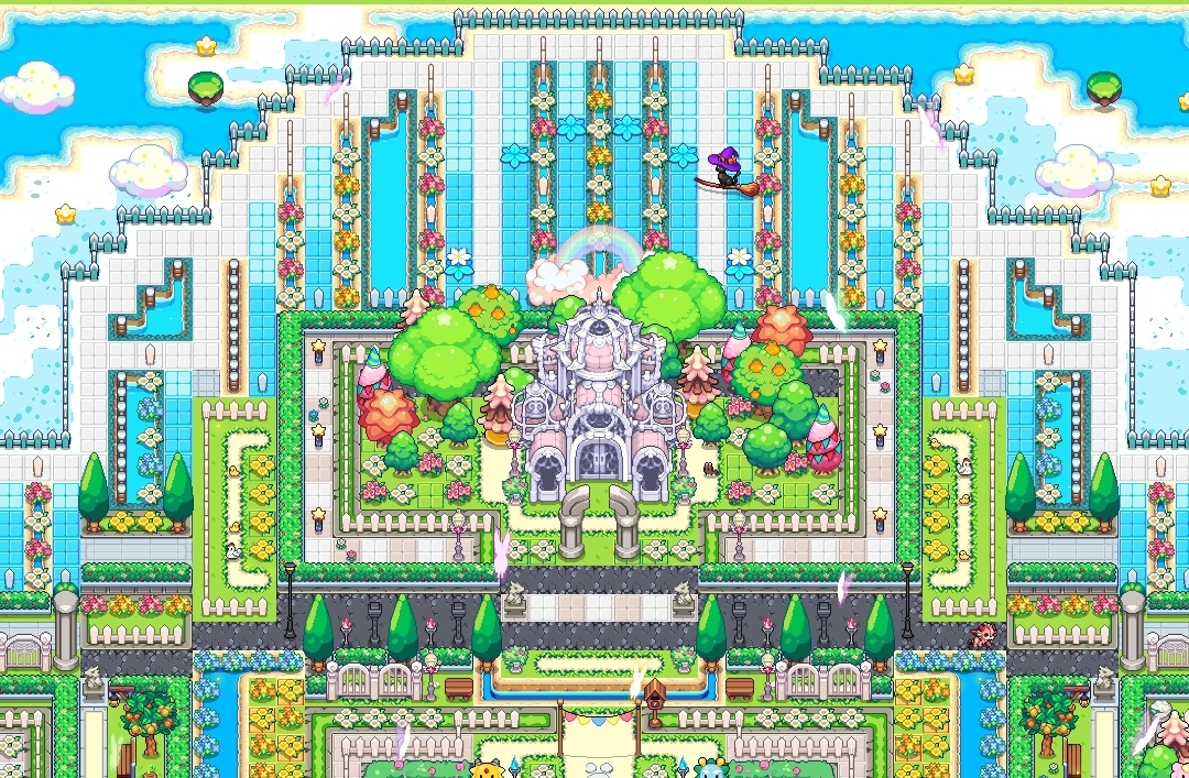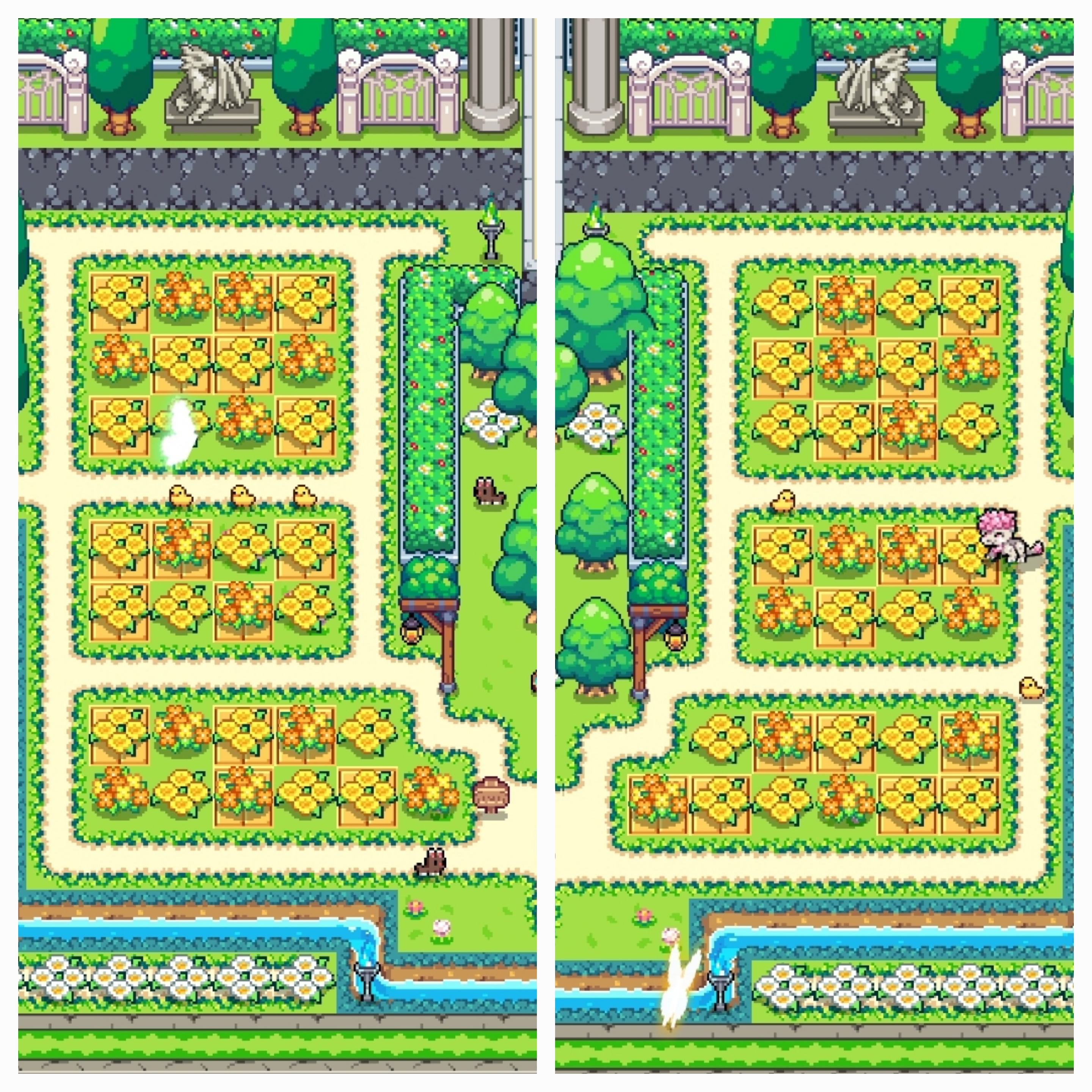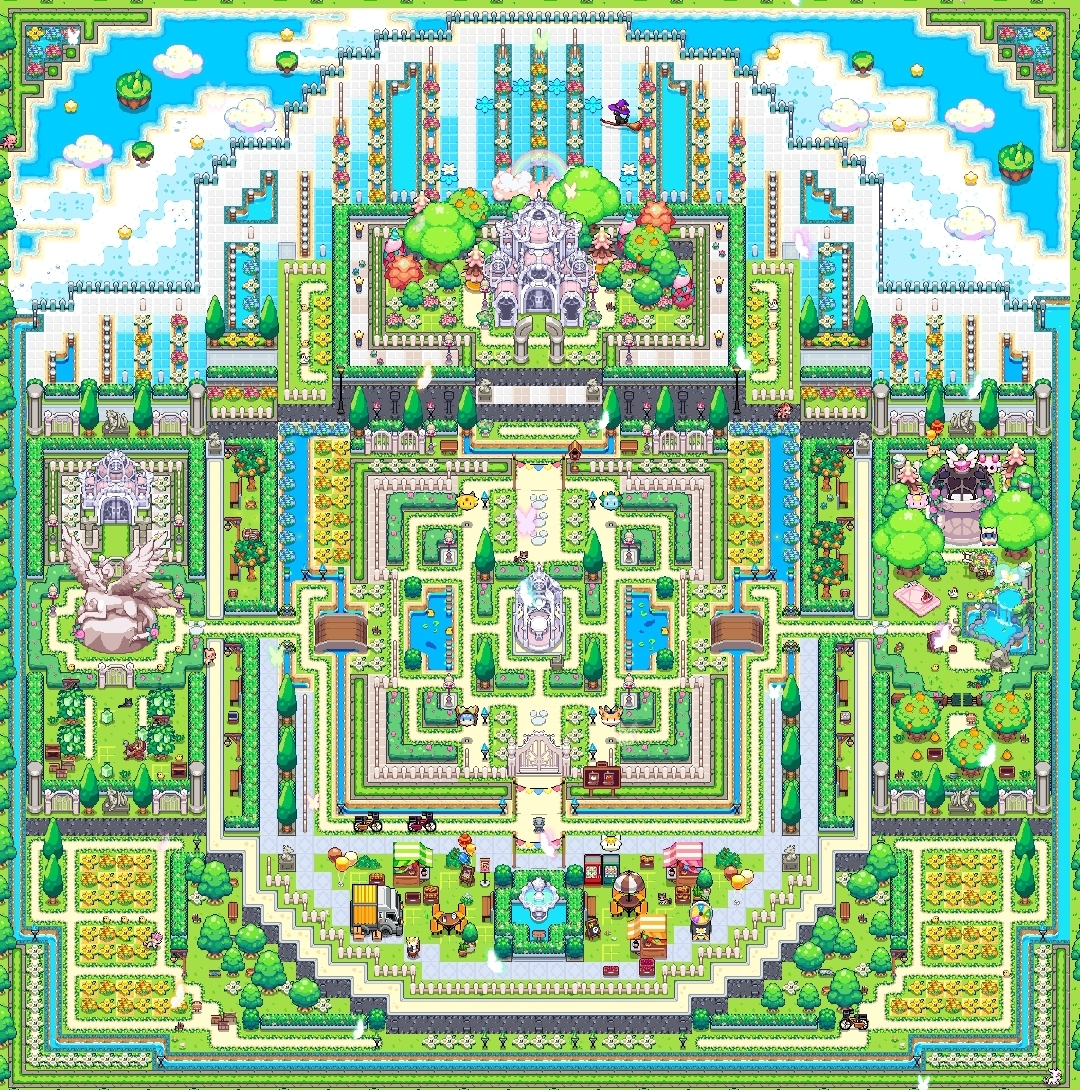 배경에는 봄비/꽃비가 내리고 푸르고 화사한 정원과 노란 유채꽃밭도 표현해봤습니다 :)