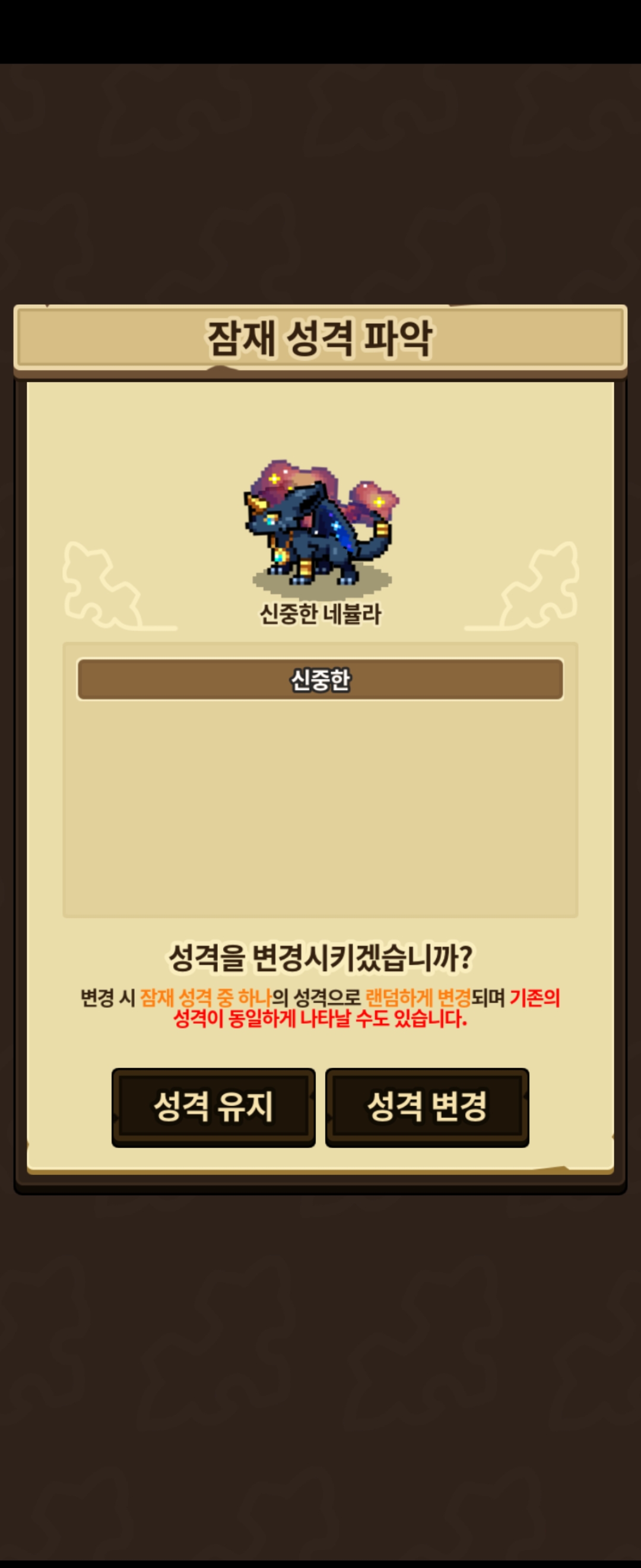 네뷸라로 도전시 가능한 성격 (루네라로 확인) 에도 뜨지 않아 문의 드립니다.