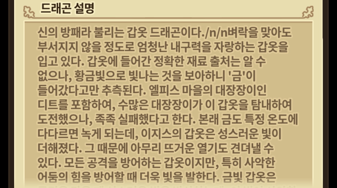 신의 방패라 불리는 갑옷 드래곤이다. /n/n
