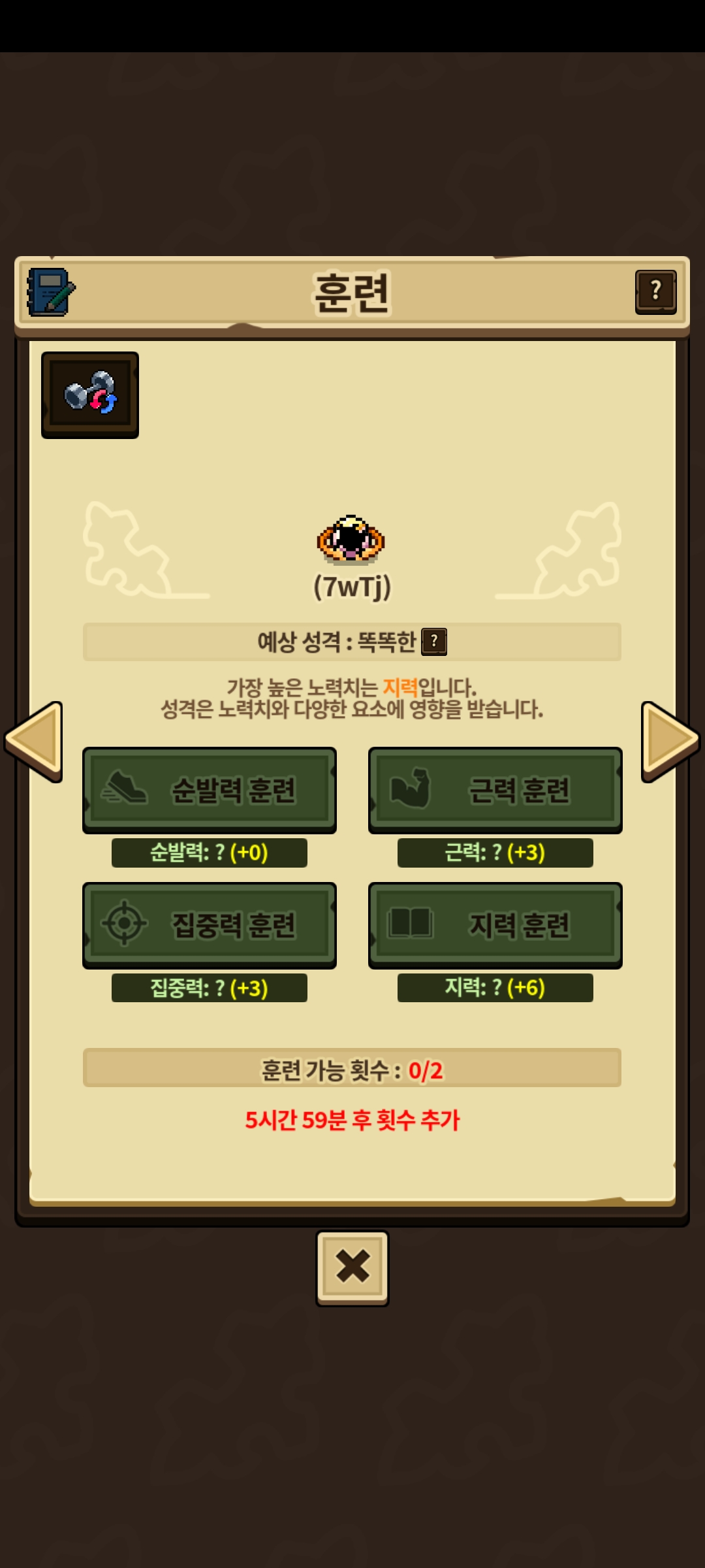 지력 +3되게 훈련 했는데,