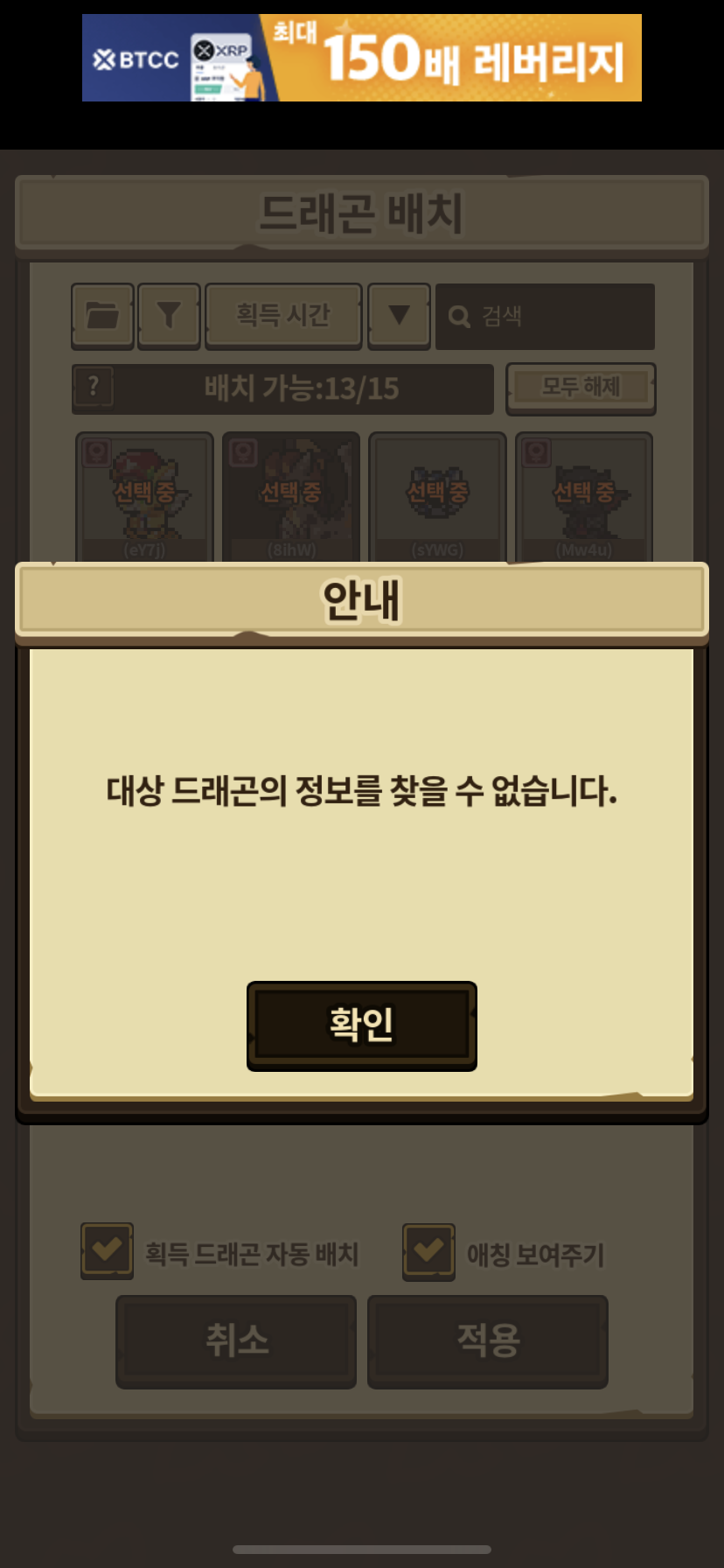 드래곤 배치를 하려는데 계속 이 문구가 뜹니다. 현재 배치된 드래곤 제외 다 이런 문구가 뜨네요.