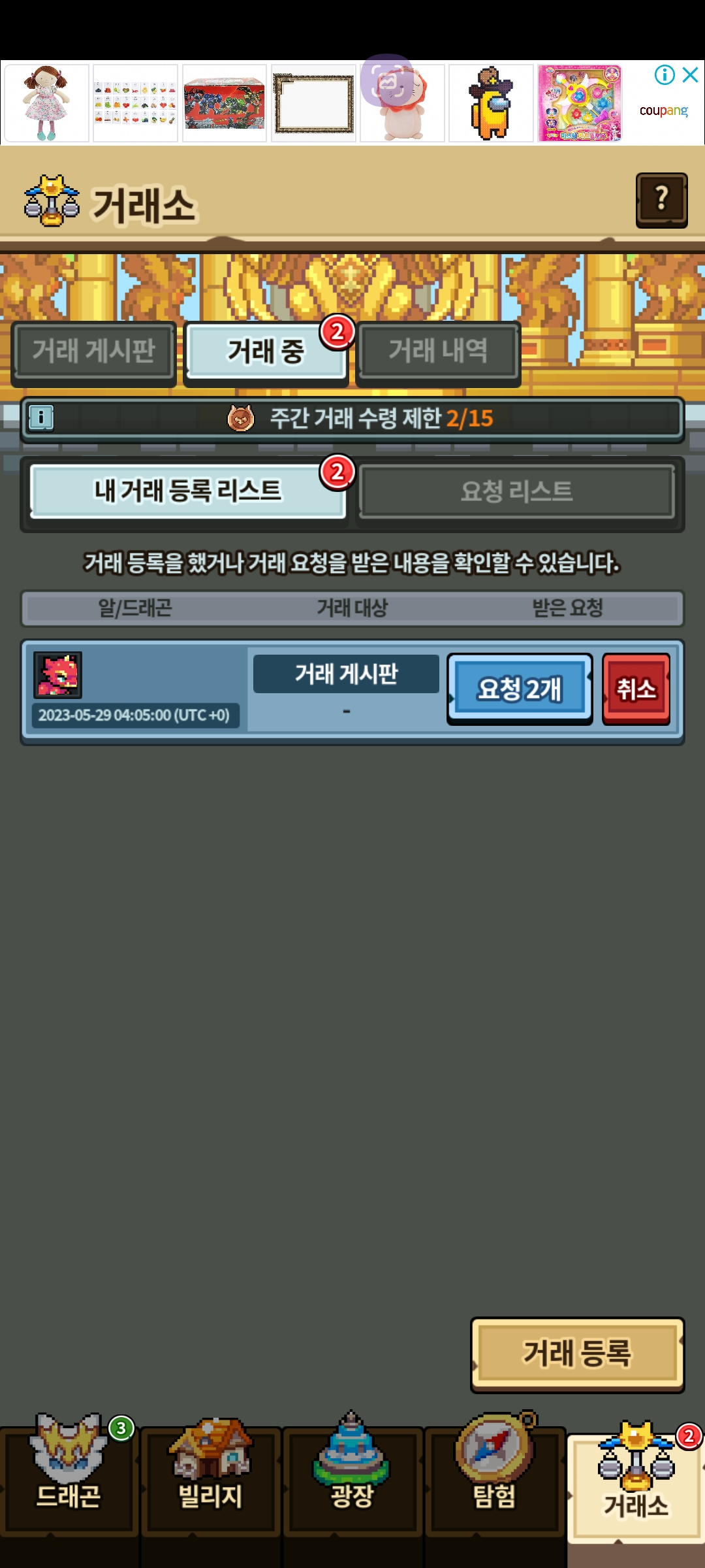 골디랑 청룡이 교환 받은 애들인데..ㅋㅋㅋ 재접하면 거래 중 표시 사라질것같긴 하지만 이런버그가 있네요..ㅋㅋㅋ