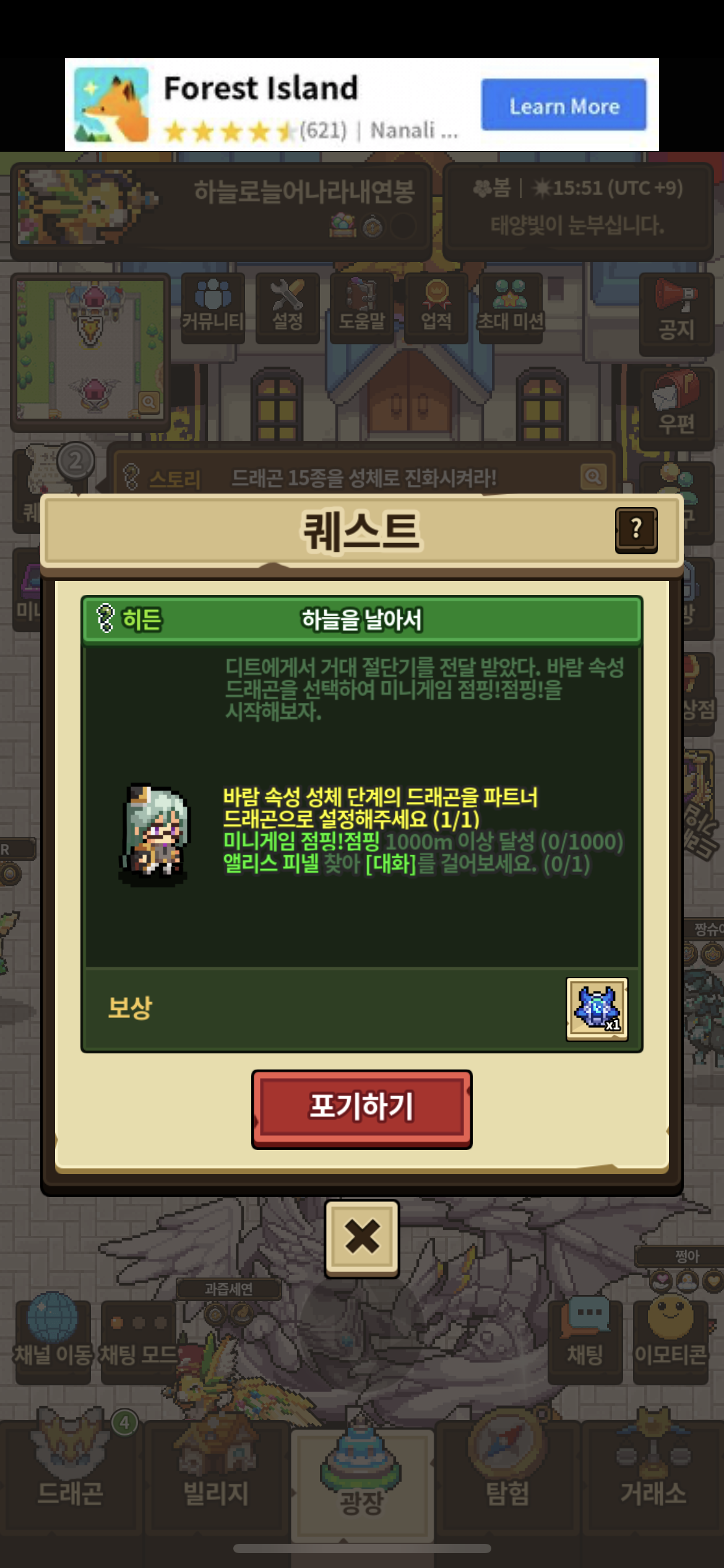 방금 점핑미션 1000m달성한 거 확인했는데 파트너 드래곤 바꾸고 오니까 갑자기 0으로 되어 있어요. 확인 바랍니다.