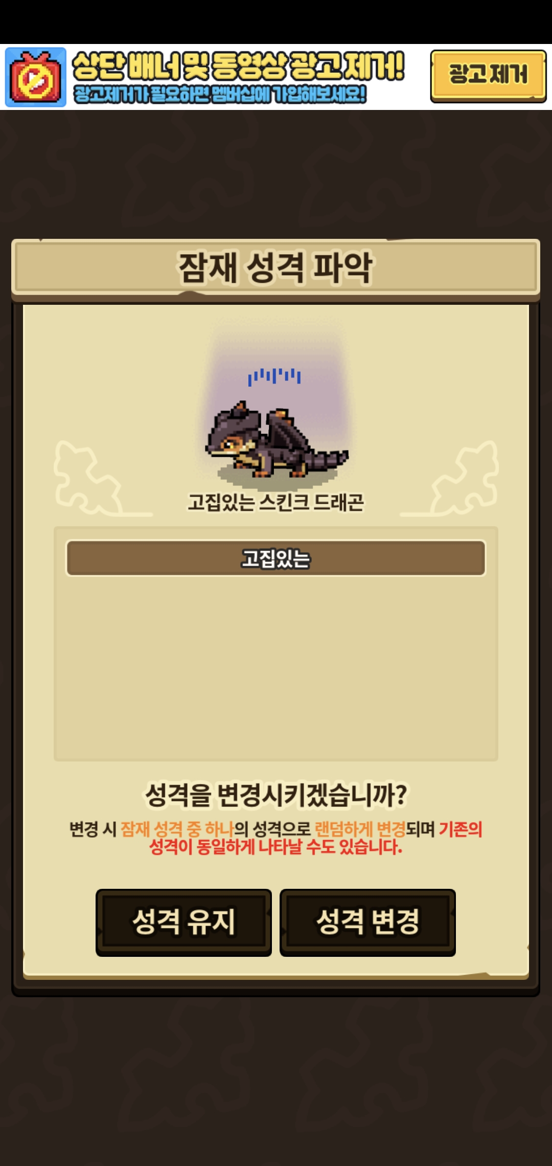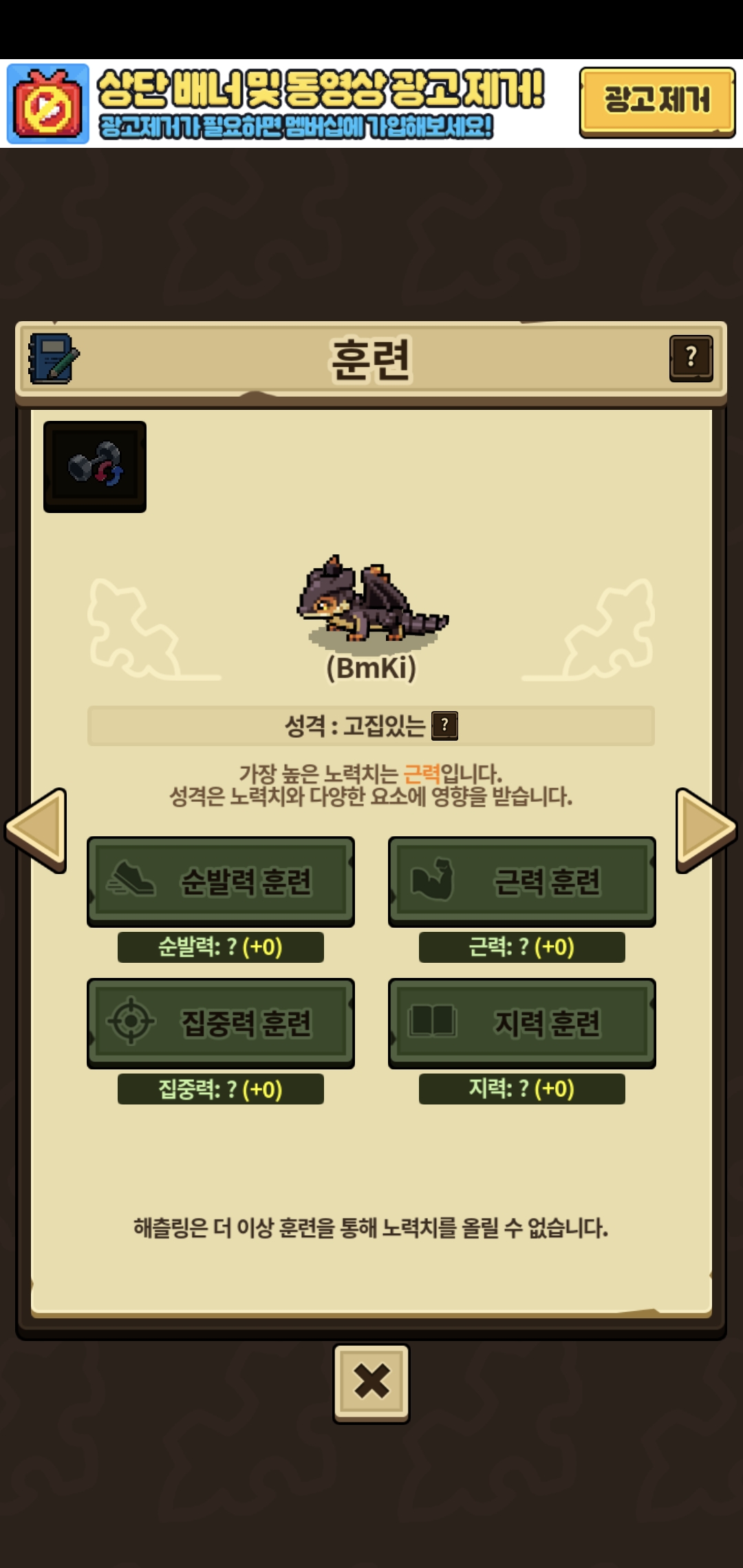 훈련작 해둔게 없으나 기본성격만 리스트에 뜨네요..