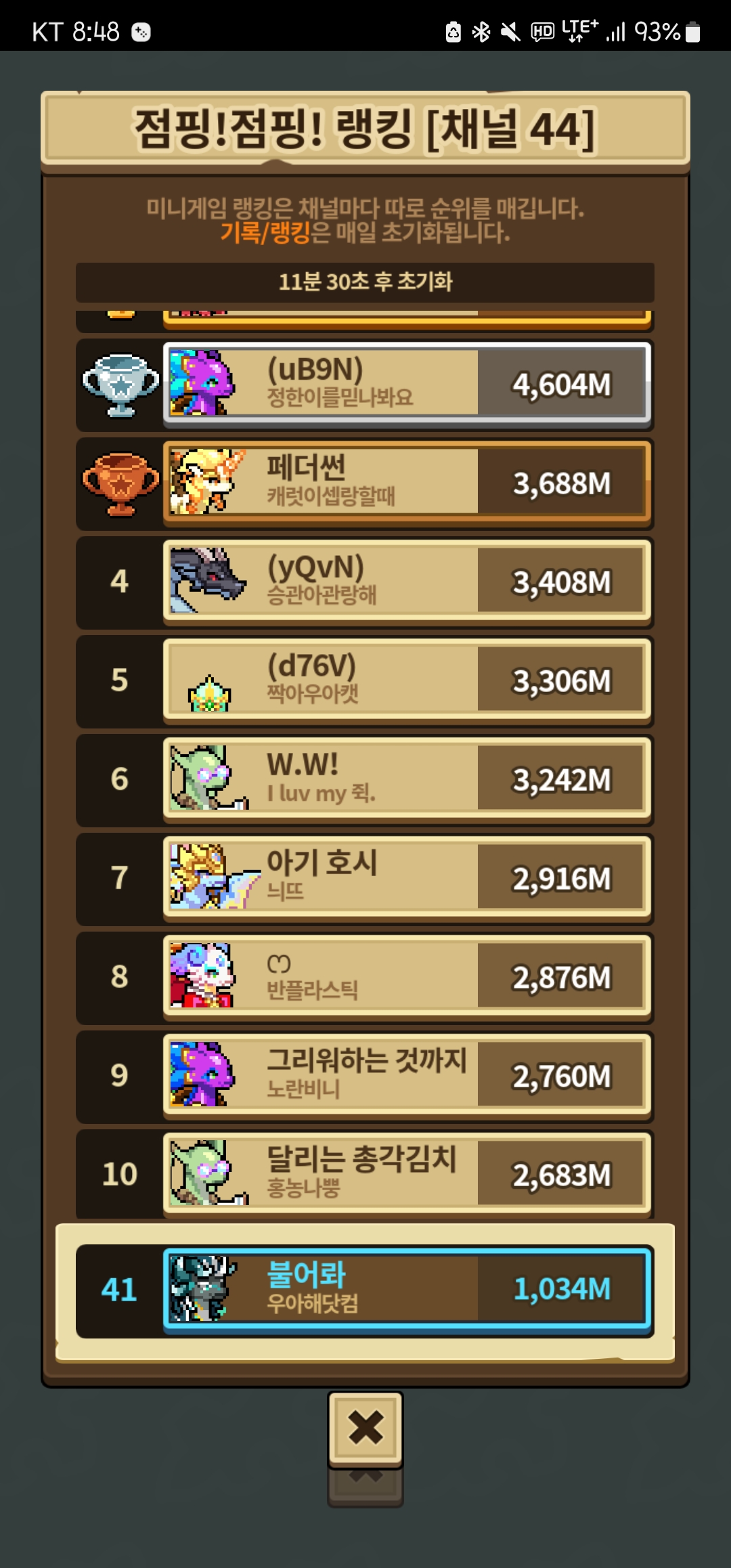 1000m 달성 후 알 칸이 없어서 완료하지 못하고 보류하였습니다. 그런데 아침에 보니 점수가 리셋되어 다시 게임을 하고 있습니다.