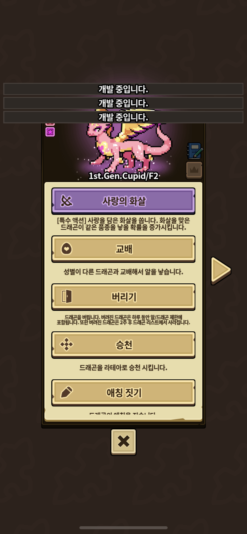 특능 누르면 “개발 중입니다”라고 뜹니다