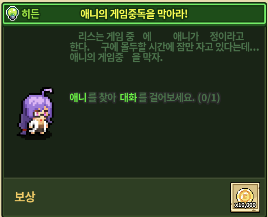 대표사진으로 첨부드립니다만… 방명록이나 퀘스트 설명창, 일부 알림 등에서 텍스트가 이상하게 잘려나오네요.