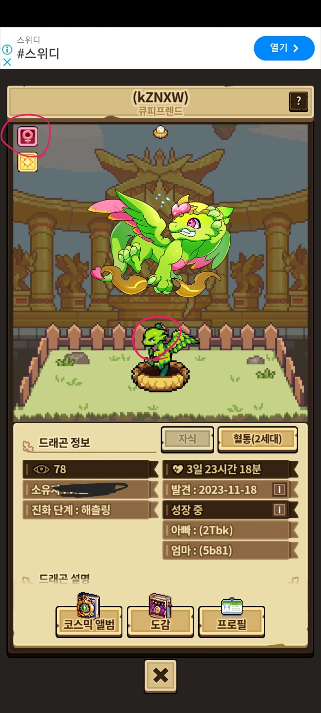 암컷은 눈 근처에 핑크핑크하게 화장?이 되어있습니다