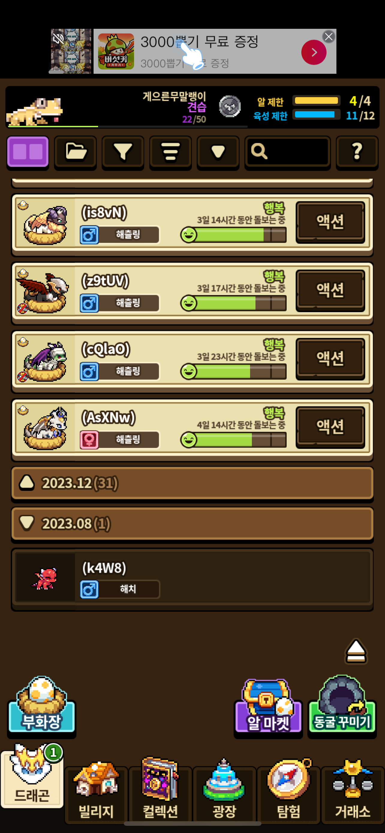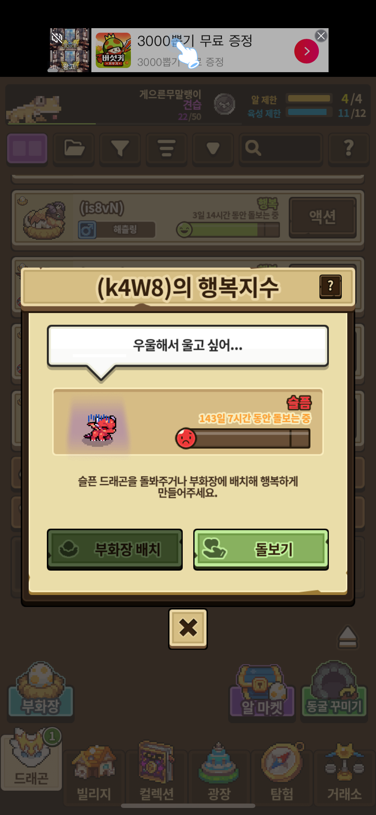 1일 19시간 3분 남았다는데 액션버튼이 활성화 될 때도 있고 안될 때도 있고 부화장 들어가면 배치하라고 뜨는데 배치는 안되고 이상하네요.