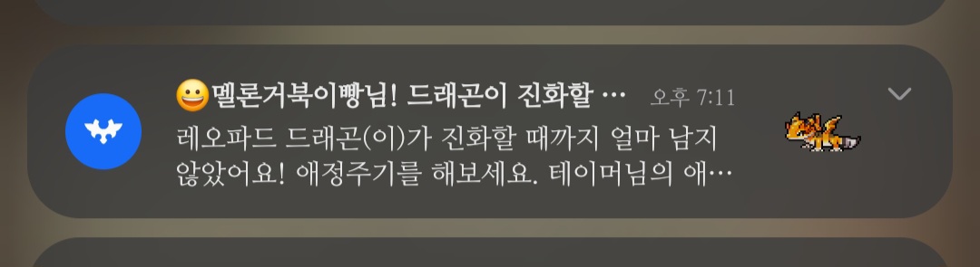 거의 같은 조건으로 큰 스킨크 성체 성장시간과 거들테일 성장시간을 보니 제 경우에는 알림이 맞고 애정주기가 안 뜨는 게 오류인 것 같습니다