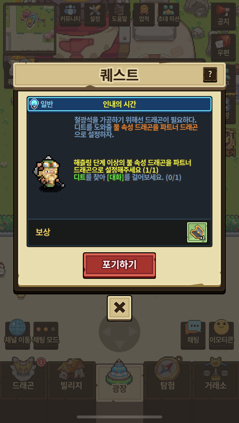 인내의 시간 퀘스트 불 속성 드래곤 파트너로 하고 말걸어야되는데 대상 드래곤의 정보를 찾을 수 없다고 합니다