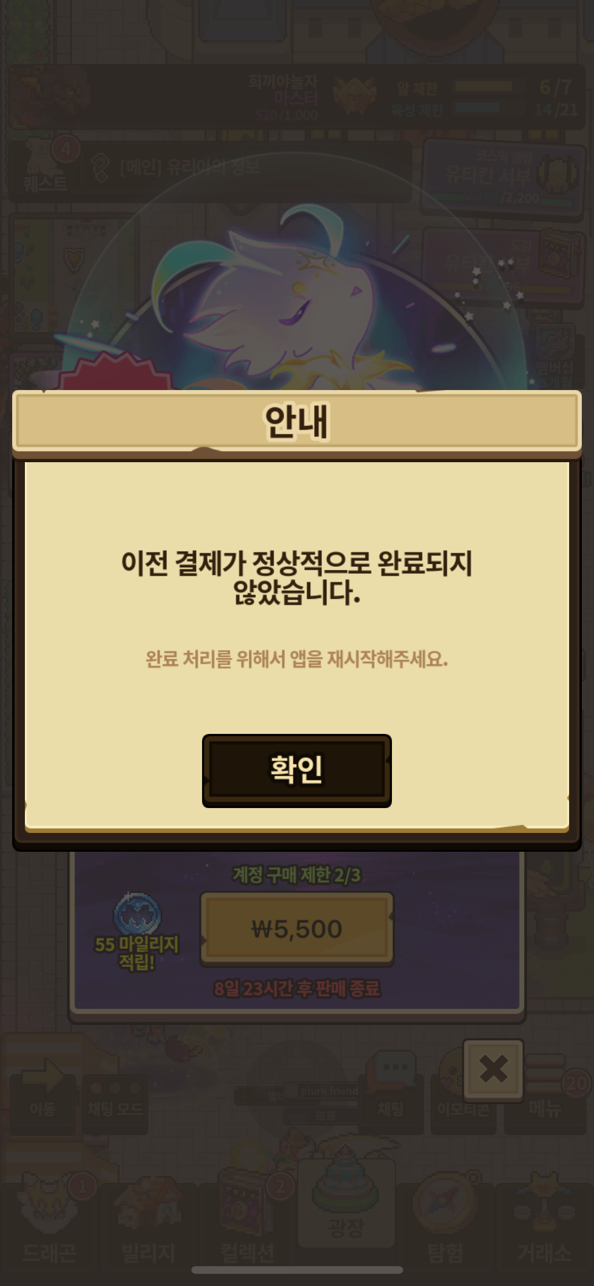 패키지 결제를 했지만 돈만 빠져나가고 보상은 들어오지 않네요. 다시 결제버튼 눌러보니깐 횟수도 차감이 안 되어 있고 다음 결제조차 불가합니다. 빠른 조치 부탁드립니다.