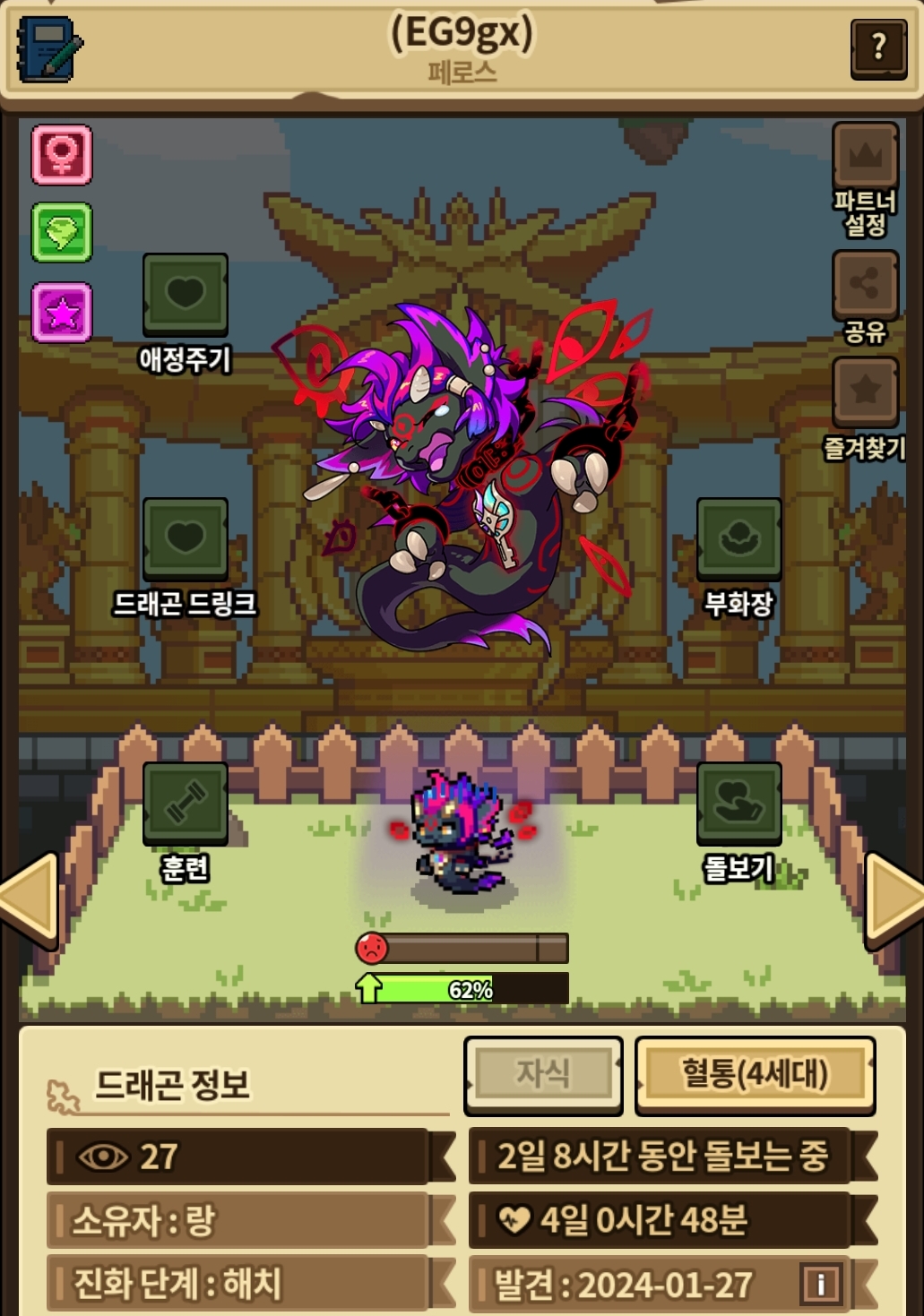 몰입작 중이라 슬픔상태로 돌보기 부화장 일절 건드린 적이 없습니다. 근데 성장게이지가 계속해서 차고 있어요. 빨리 해결 좀 해주세요. 이러다가 몰입 다 못 찍고 해츨되게 생겼습니다. 오늘 새벽부터 문의 3번이나 넣었는데 답이 없으시네요.