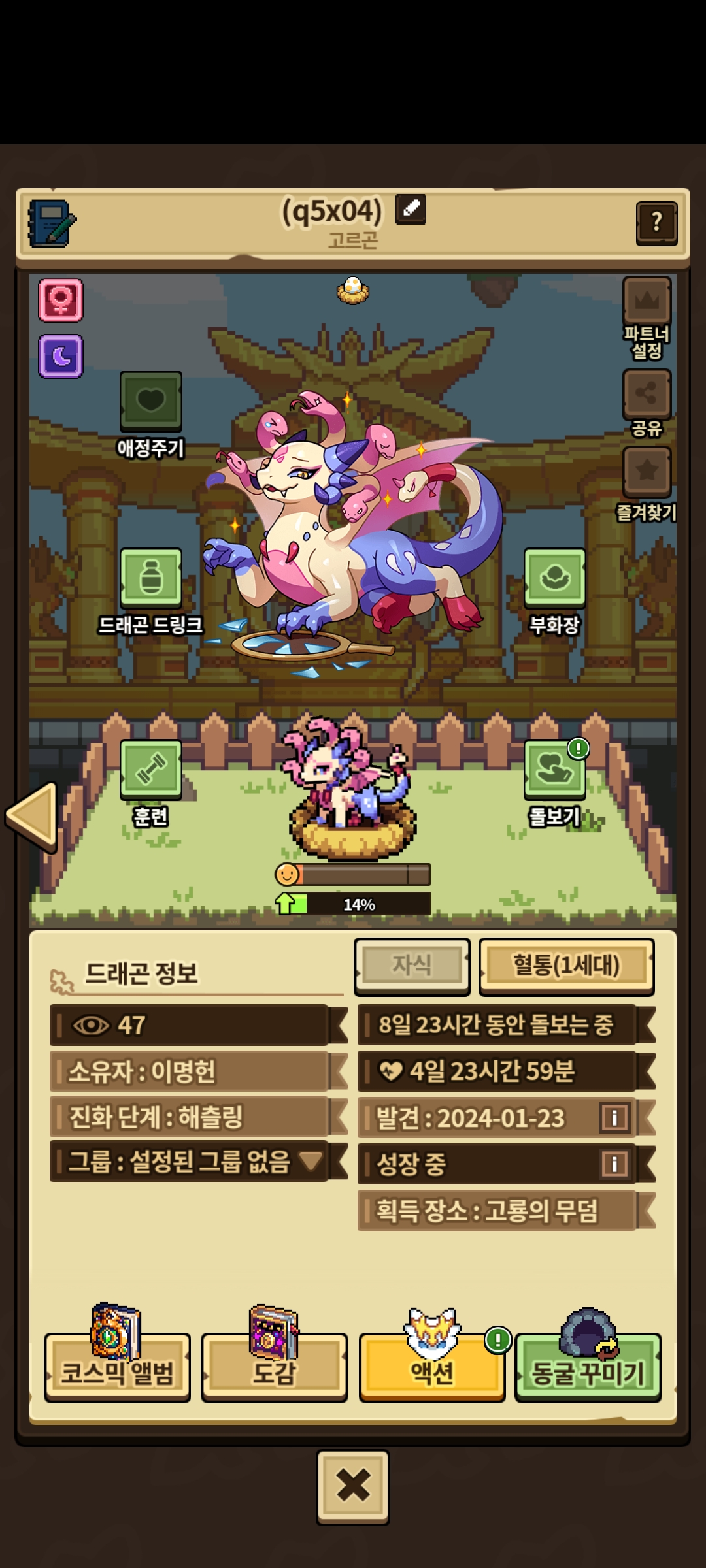 고르곤 드래곤을 심약한성격으로 진행했는데 기본 성격이 나왔습니다.