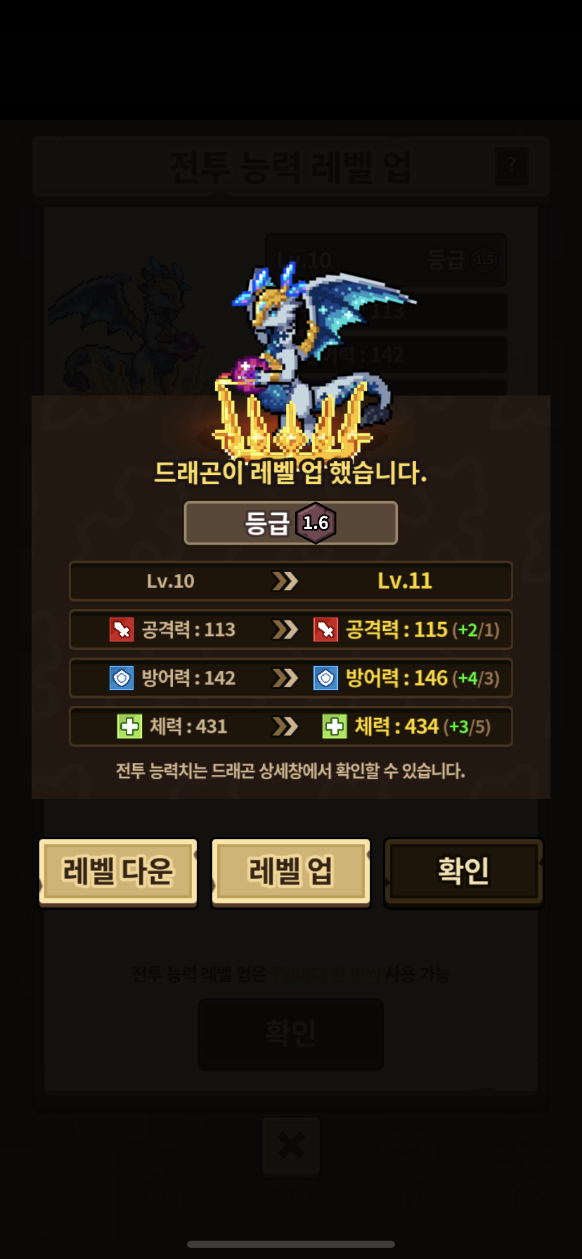 타이게타를 레벨업 시키는 도중 맥스가 뜨지 않았는데도 등급하락이 일어나지 않아서 자세히보니 능력치증가 최대치를 넘었네요.