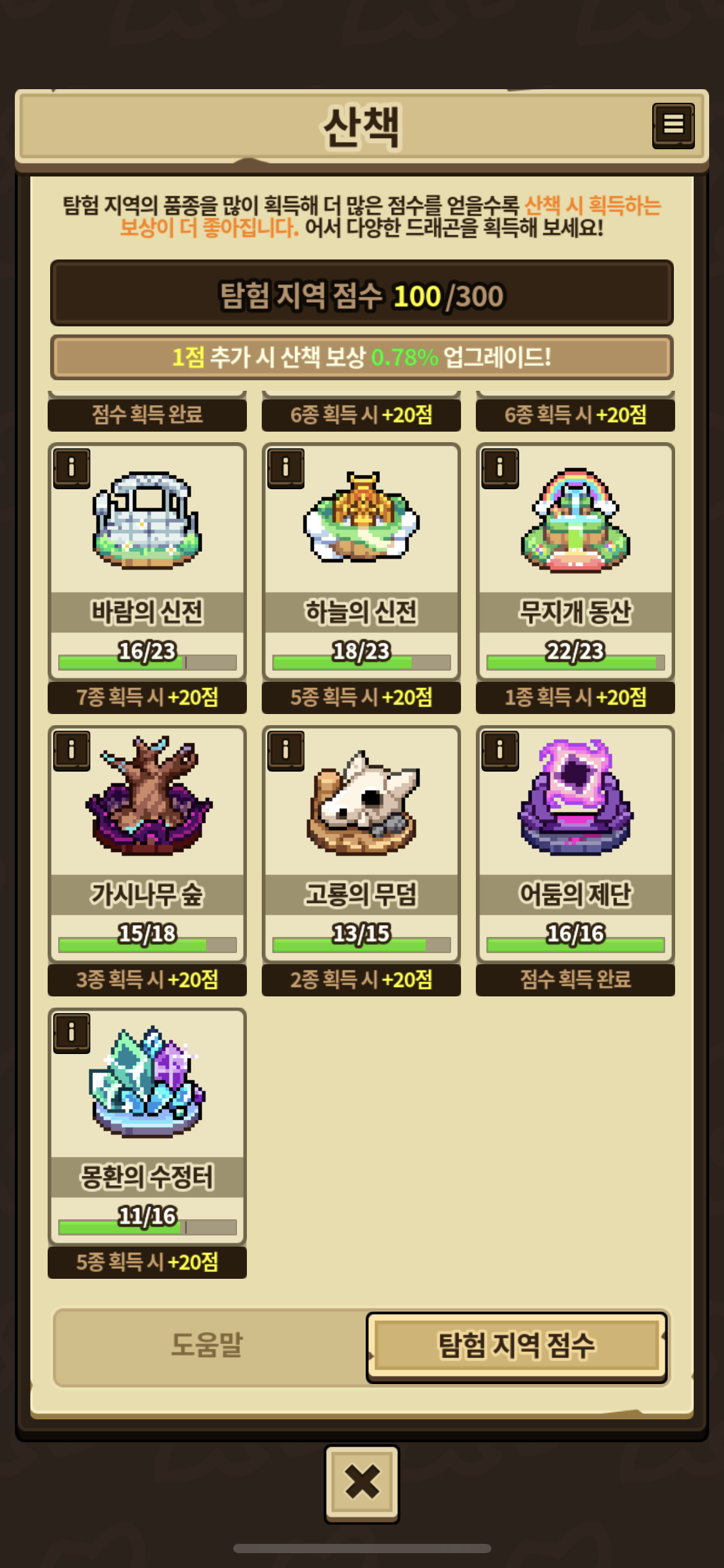 그동안 열심히 도감 채우느라 점수는 안 보고 있었는데, 어제 어둠의 제단 점수를 다 채우고 나서도 점수가 오르지 않아 ‘아, 내일 올라가는 시스템인가?’하고 일일 퀘스트 보상을 받았거든요.