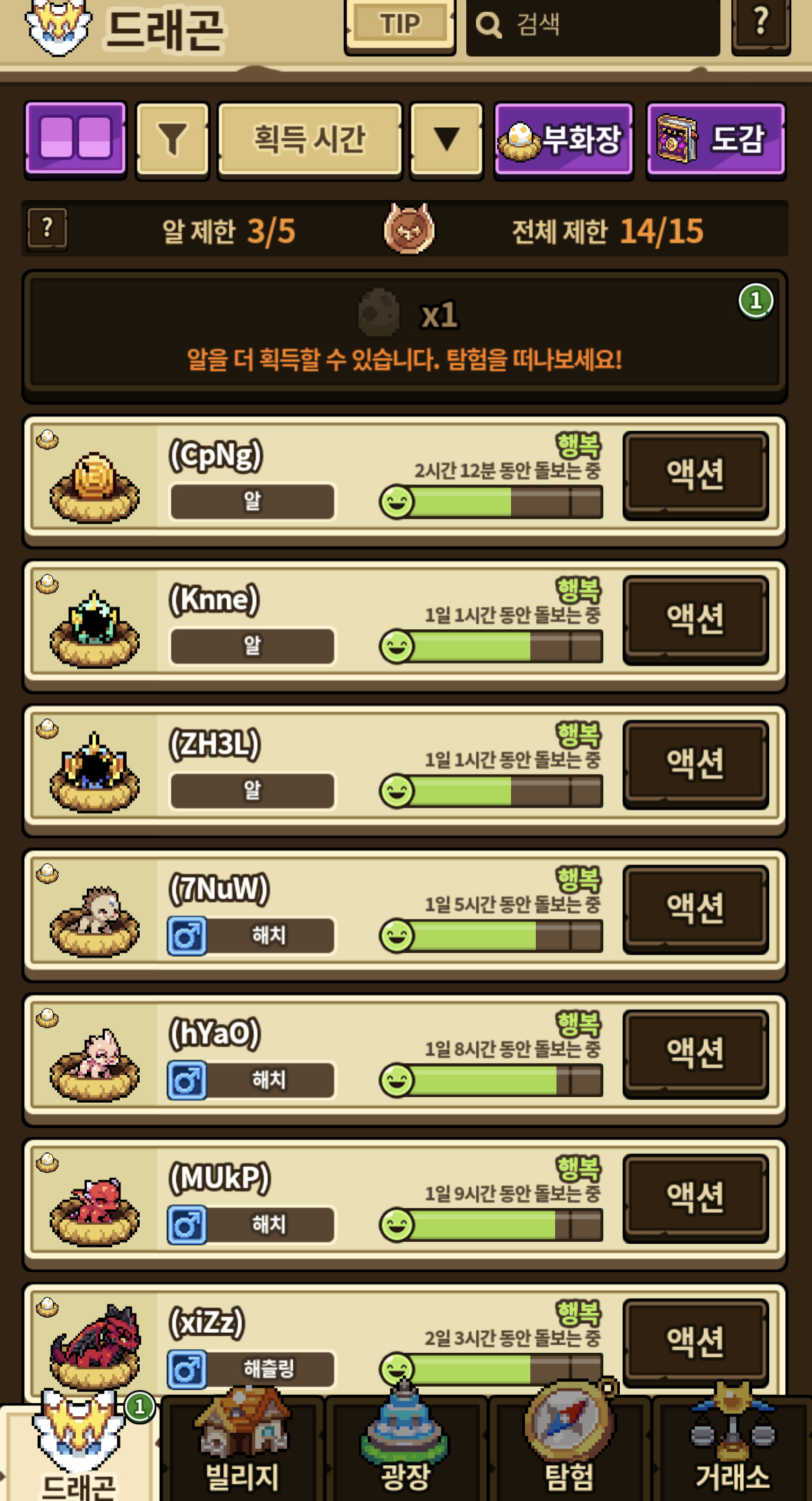 지금 저한테 있는 알이 세 갠데 획수할 수 있는 알은 1개 밖에 안 떠요..