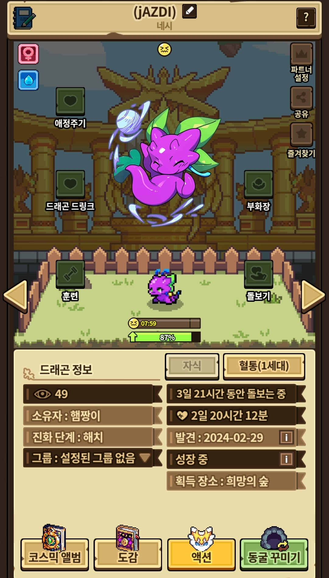 페스티벌 네시를 딜리스박스에 넣었다가 꺼내어 부화시키니 일반 네시 폼이 나왔습니다.