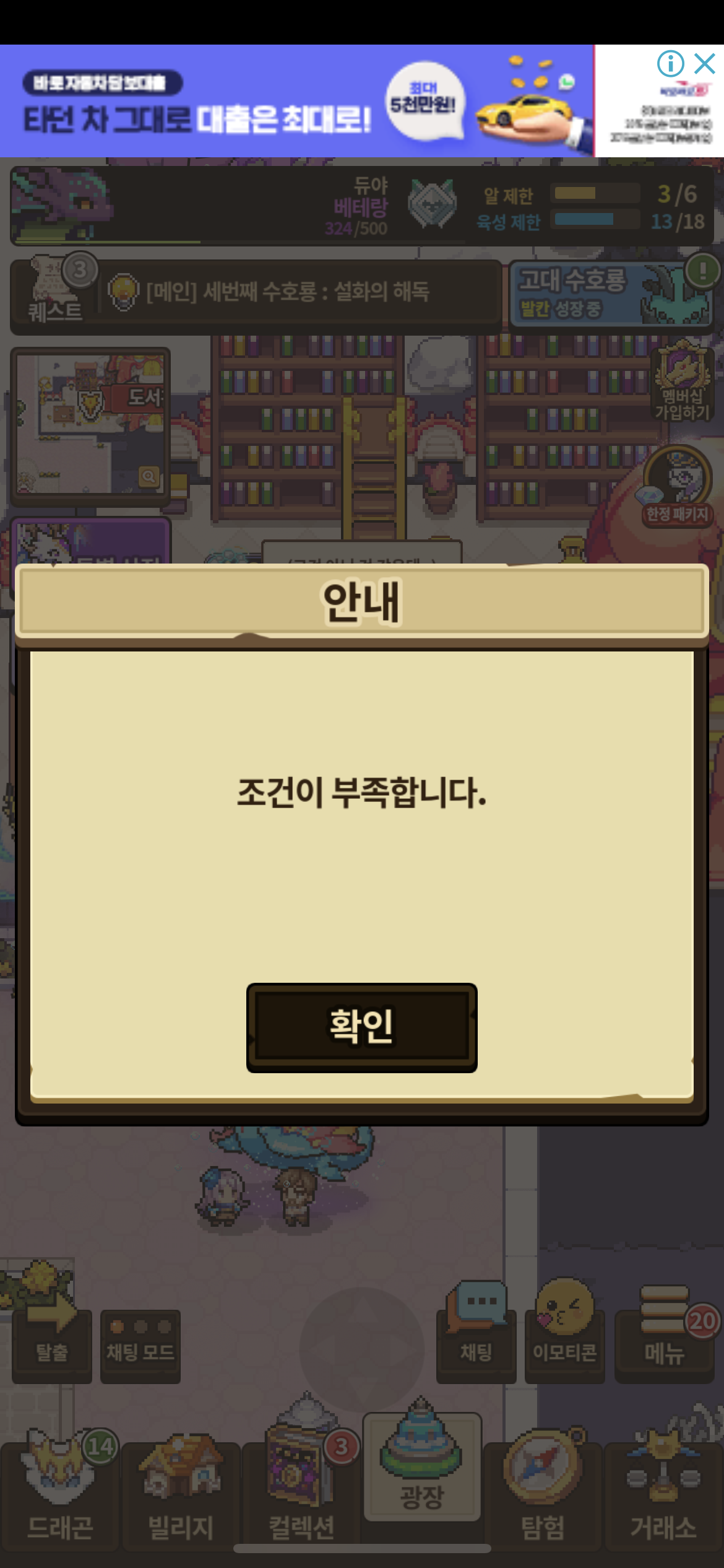 npc에게 말을 걸면 조건이 부족하다고 표시됩니다.