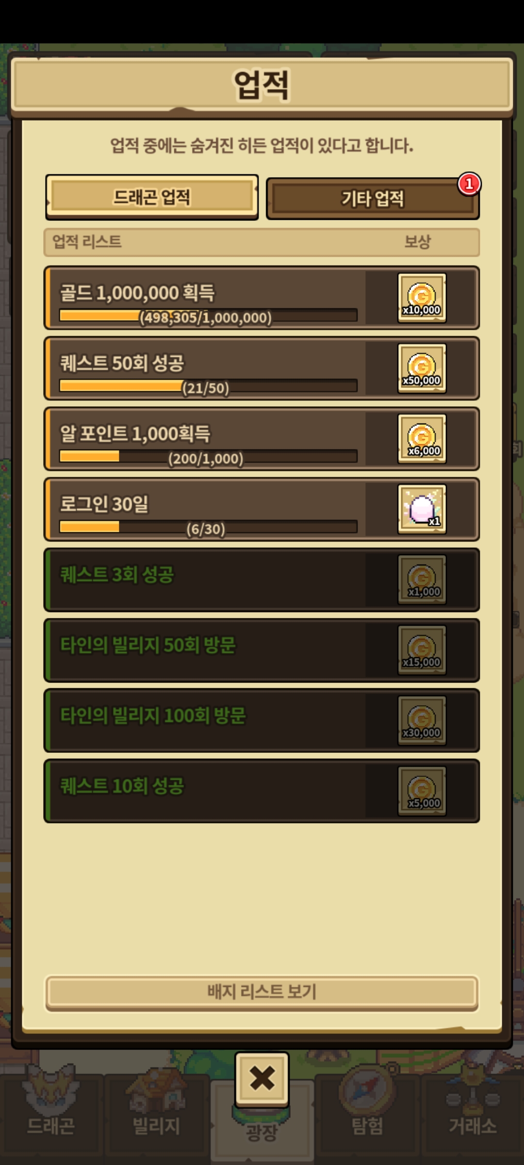 타인의 빌리지 300회 방문 업적이 깨졌는데