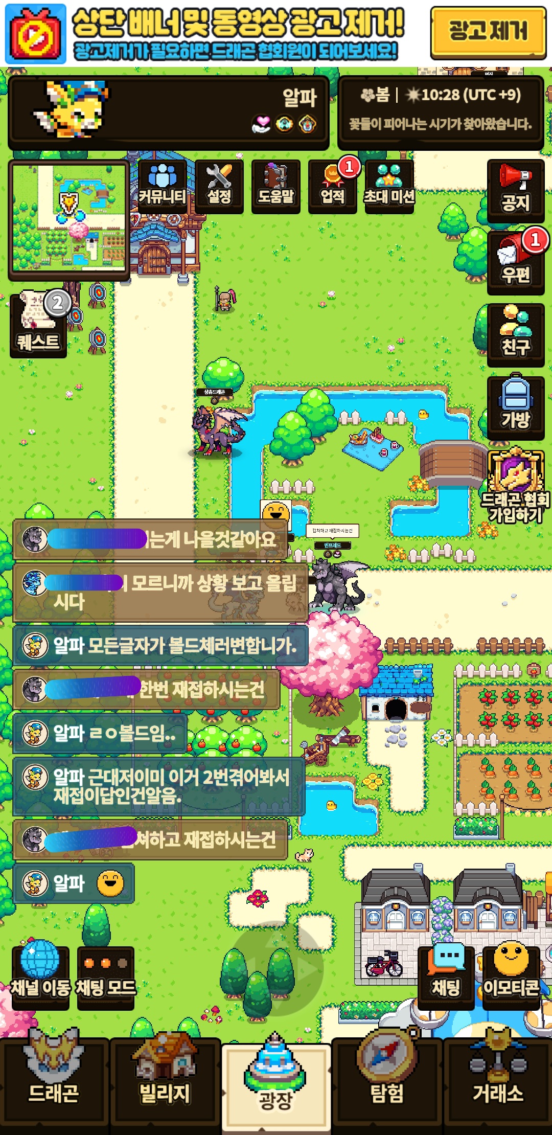 아마 윗광고배너를 누른후에 바로 뒤로 가기눌러서 게임에 돌아오면 걸리는버그같습니다. 2번이나 계속당해서.. 실제로 채팅말고도 탐험하는지역 모두 굵게표시됩니다.